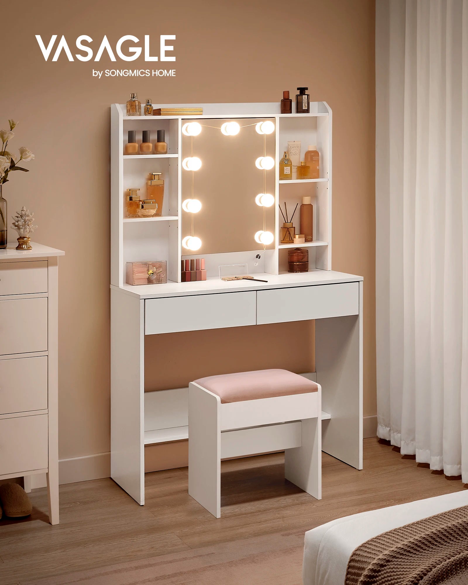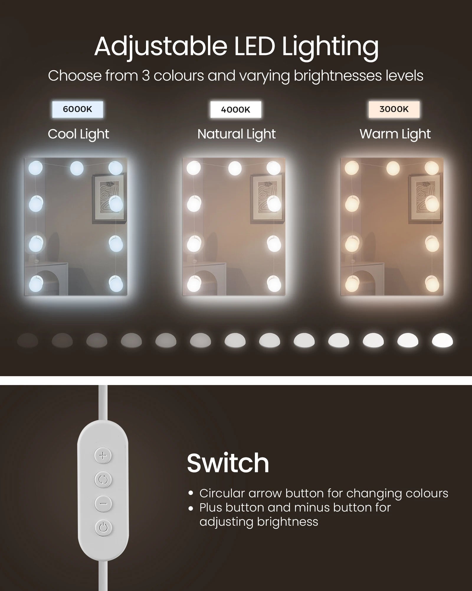 Dressing Table with LED Lights,Mirror & 2 Drawers