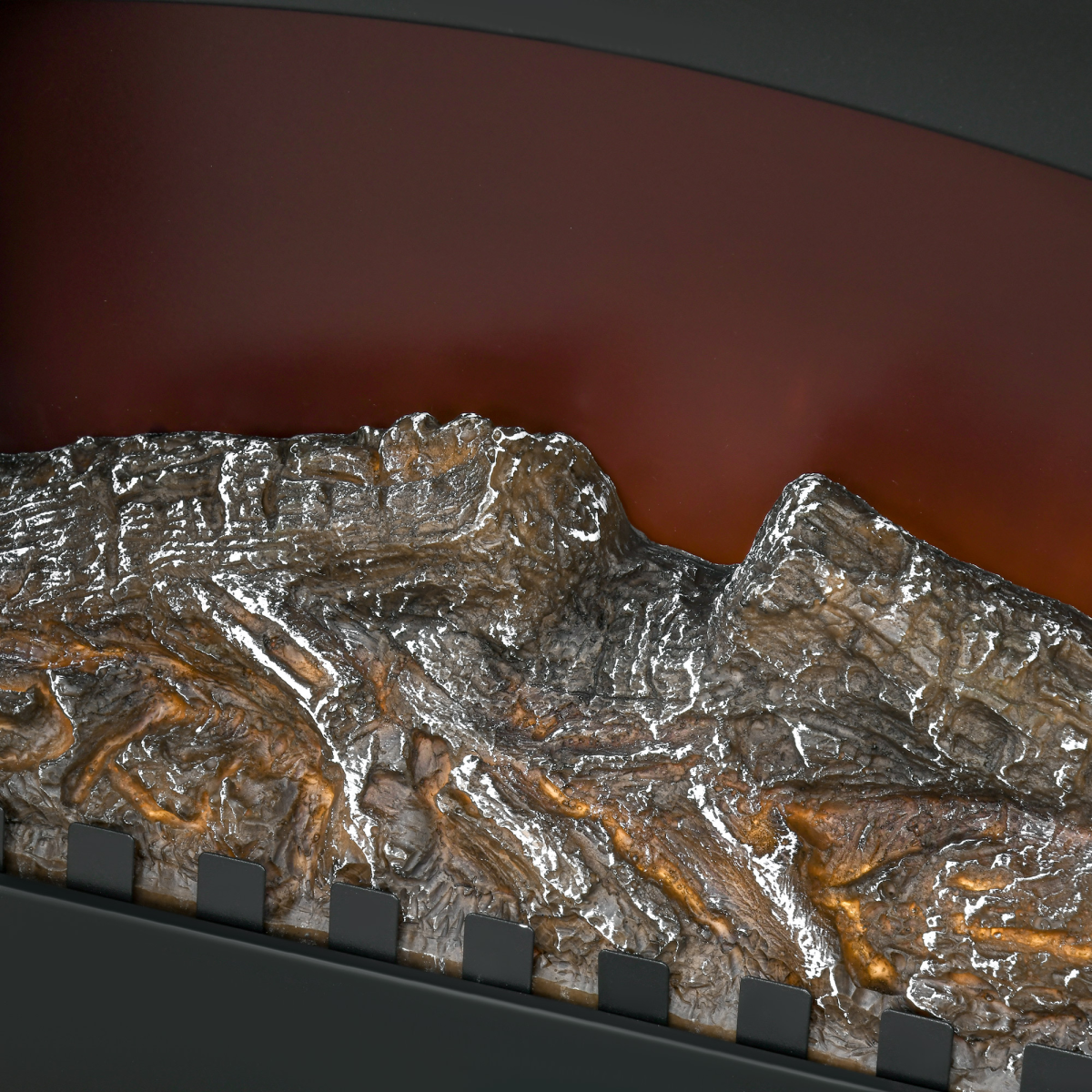 Freestanding electric fireplace with transparent tempered glass front for better viewing