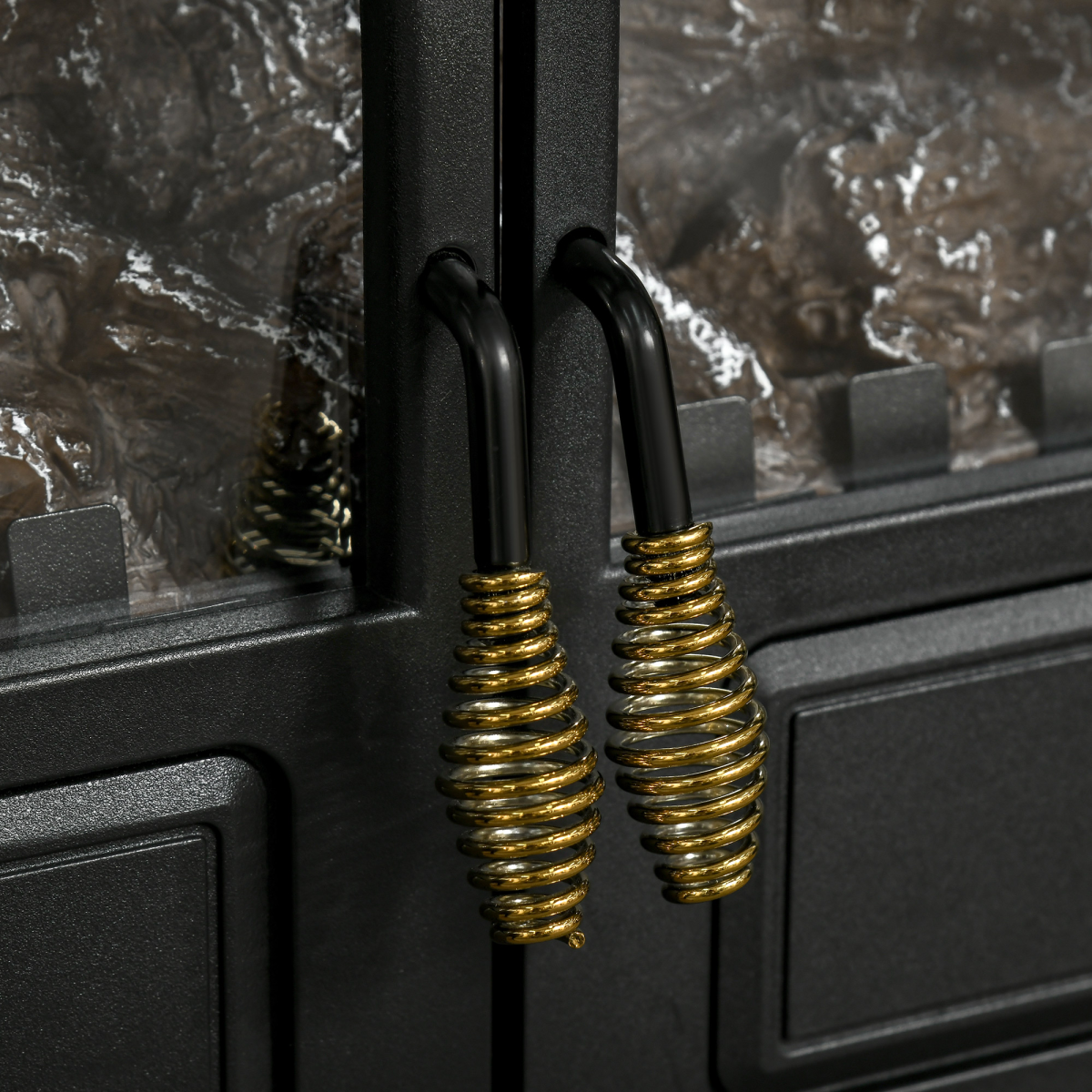 Electric Fireplace LED Fire Flame Effect, Double Door, 1000W/2000W, Black