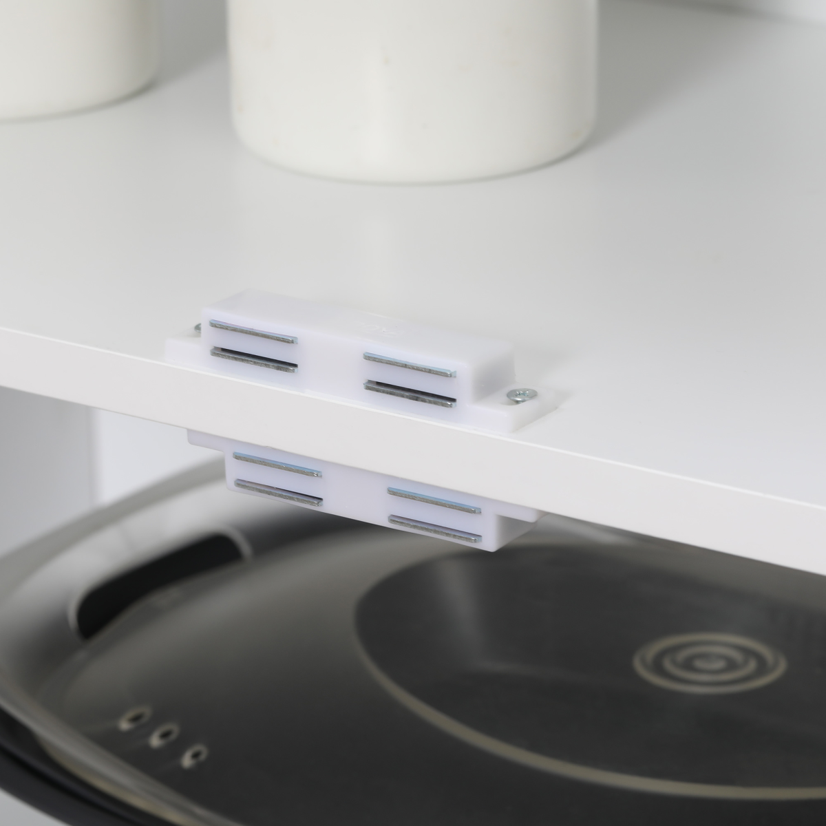 Featuring six spacious tiers, this larder cupboard offers ample storage space for all your kitchen essentials. It is securely enclosed with four stylish front doors, complete with sleek metal handles, ensuring your items are organized and protected. Keep your kitchen neat and tidy effortlessly with this functional and chic storage solution.