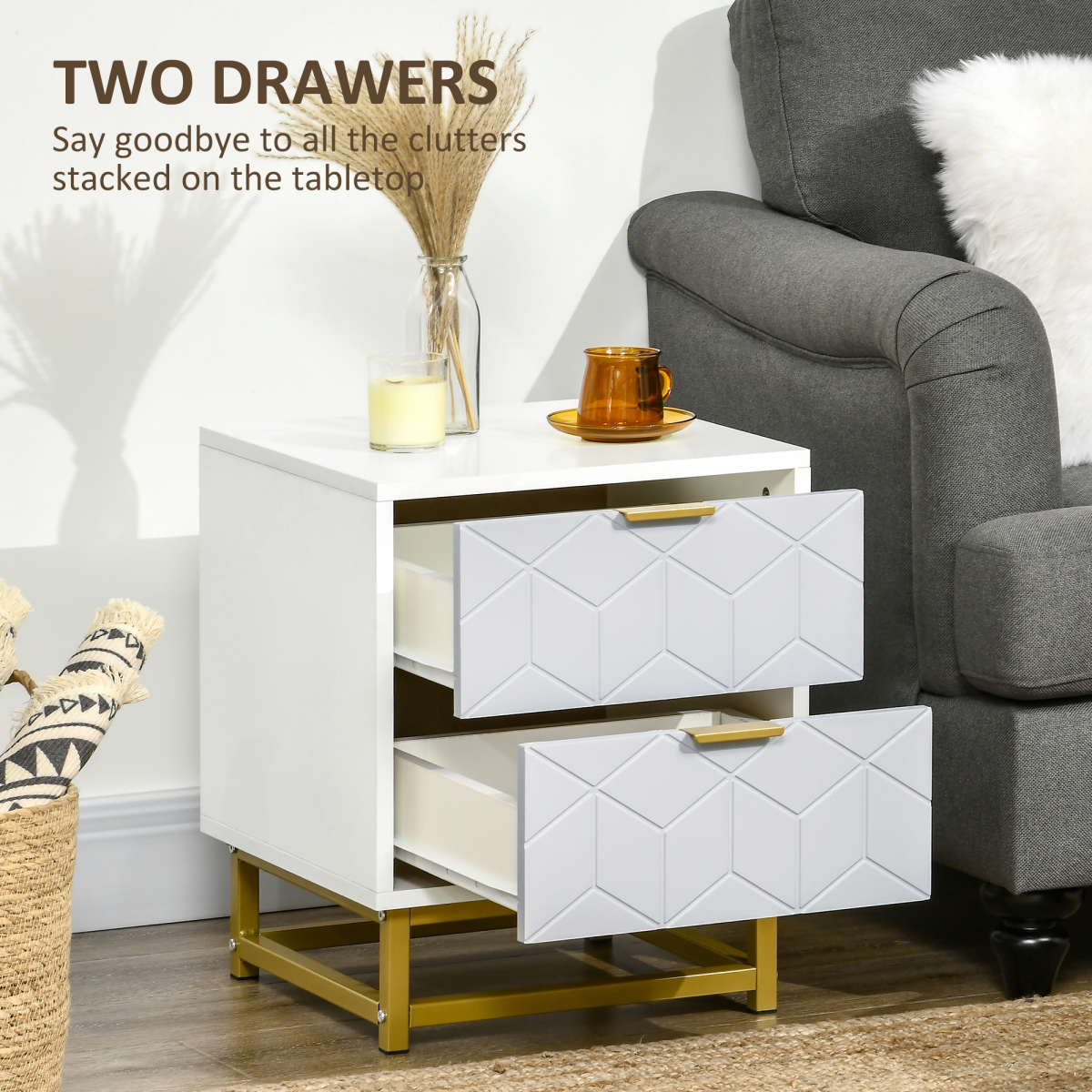 Elegant Bedside Table with 2 Drawers & Steel Frame