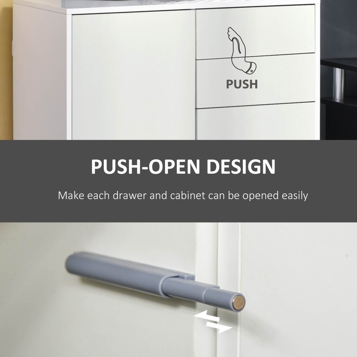 PUSH OPEN: Say goodbye to cumbersome handles! Our innovative push-open mechanism allows for effortless access—just one gentle push and the drawers and cabinet doors glide open smoothly, saving you time and effort.
