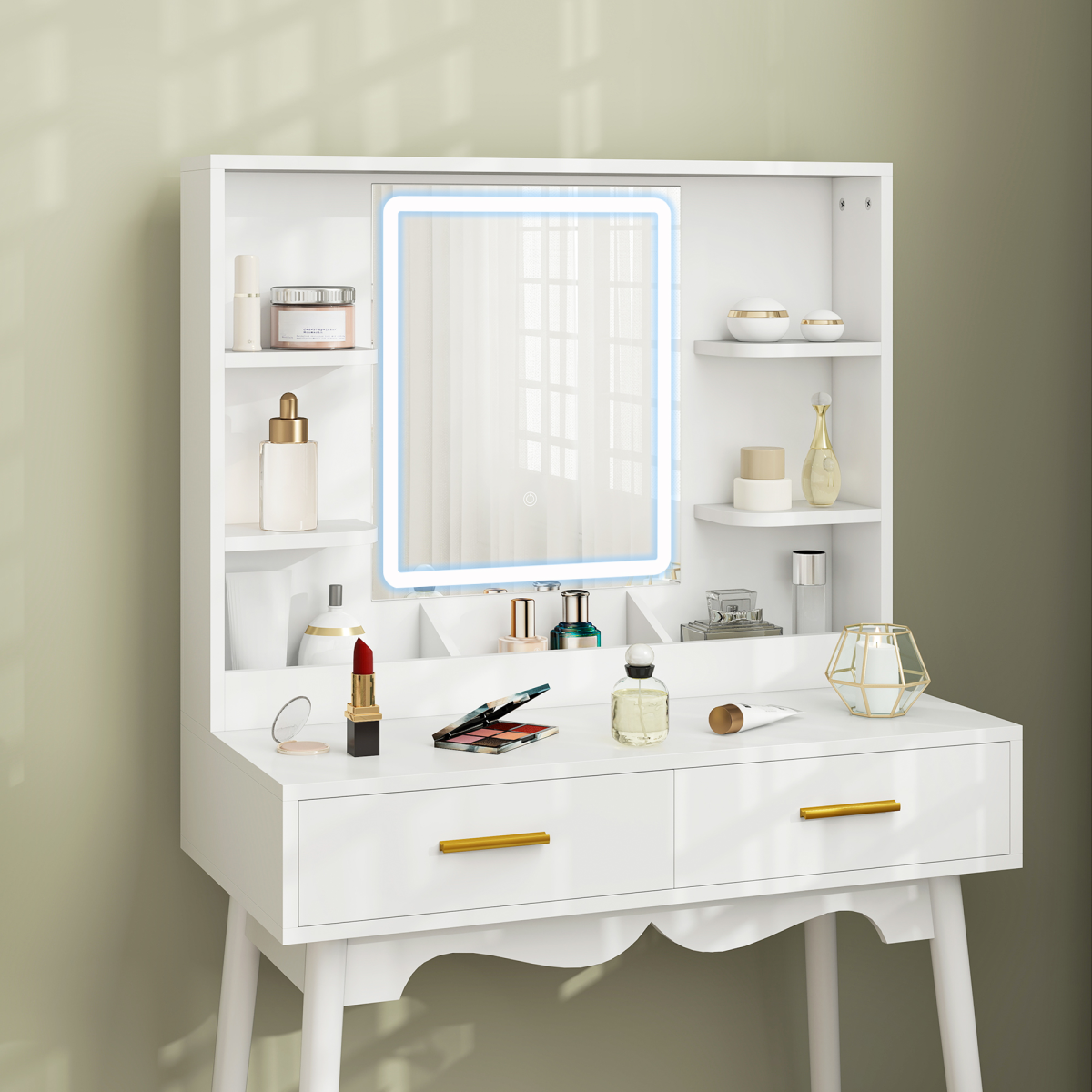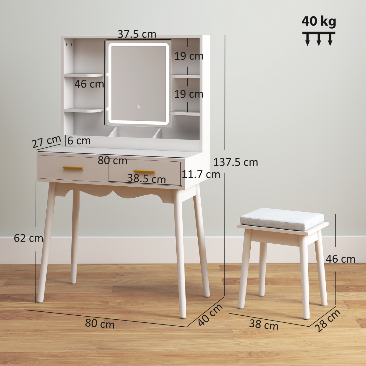Elegant LED Lighted Dressing Table & Plush Stool - Stylish Vanity Set