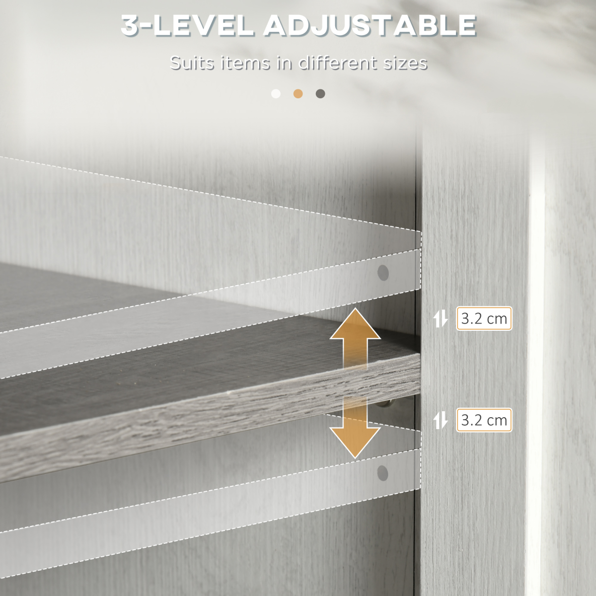 One of the standout features of this cabinet is its inner adjustable shelf, which can be configured to three different heights. This allows you to customize the space to accommodate items of various sizes, ensuring easy access and optimal storage.