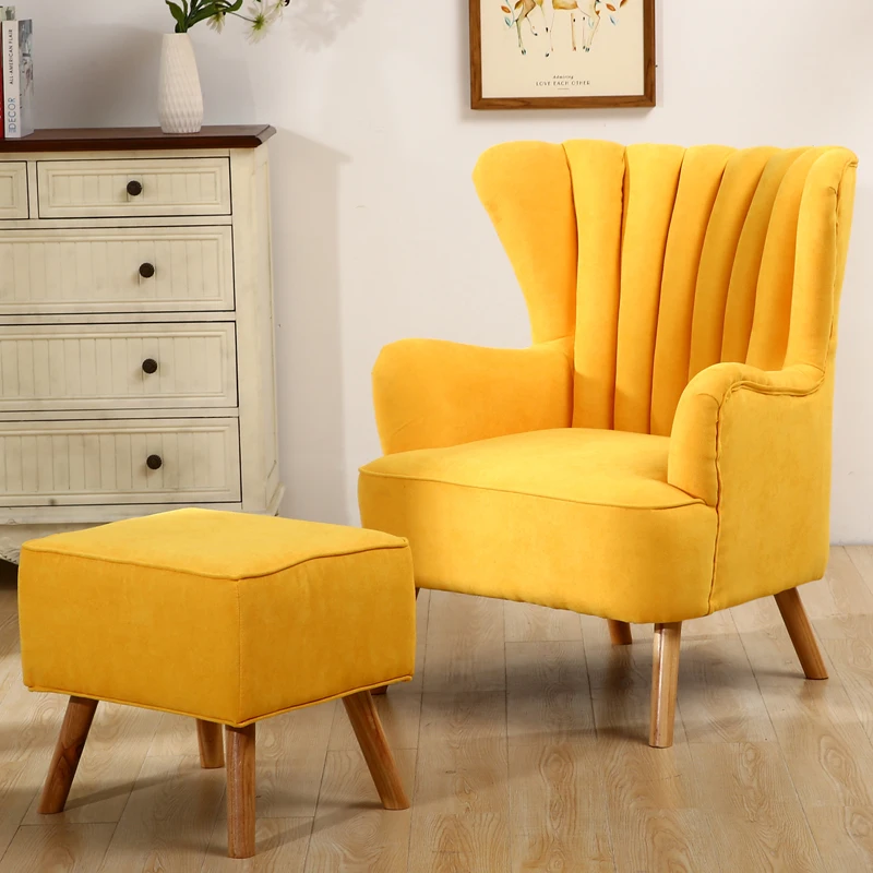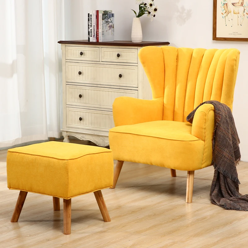 This upholstered armchair, with its sharp, contemporary features, is a great addition to any home or office. The smooth upholstered seat, high back, and armrests ensure extreme seating comfort. At the same time, there is an extra padded cushion to optimize your comfort, and wooden legs to provide strong support. They are all specially designed to meet the mid-century style. What’s more, it also comes along with a footstool, which works best as a footrest, enhancing seating comfort even further.