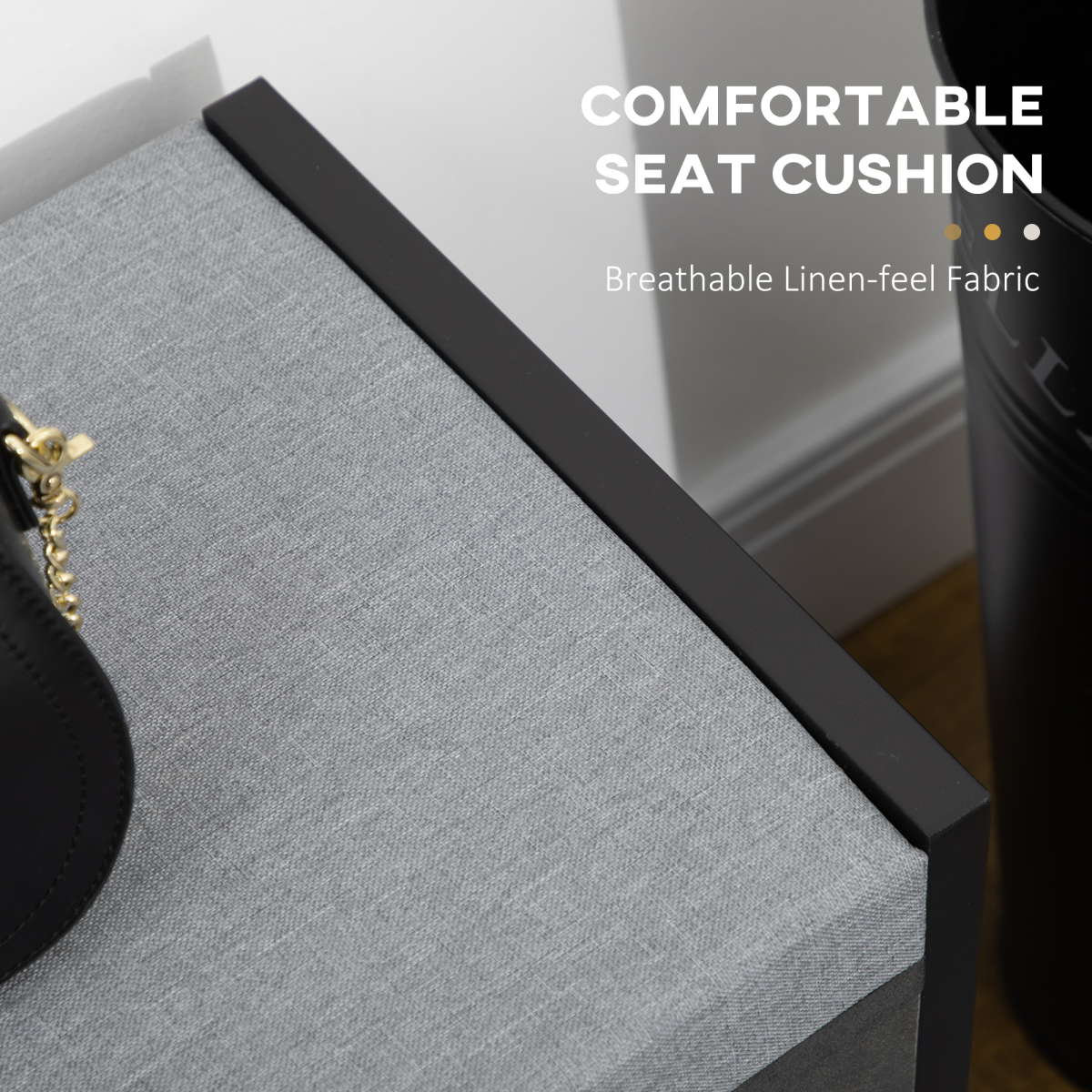 Transform your entryway with the stylish and functional Upholstered Entryway Shoe Bench. This shoe hallway bench is designed to keep your footwear organized and easily accessible. Featuring two spacious open shelves, it comfortably accommodates up to six pairs of shoes, while the tall side shelf provides ample space for your favorite boots.
