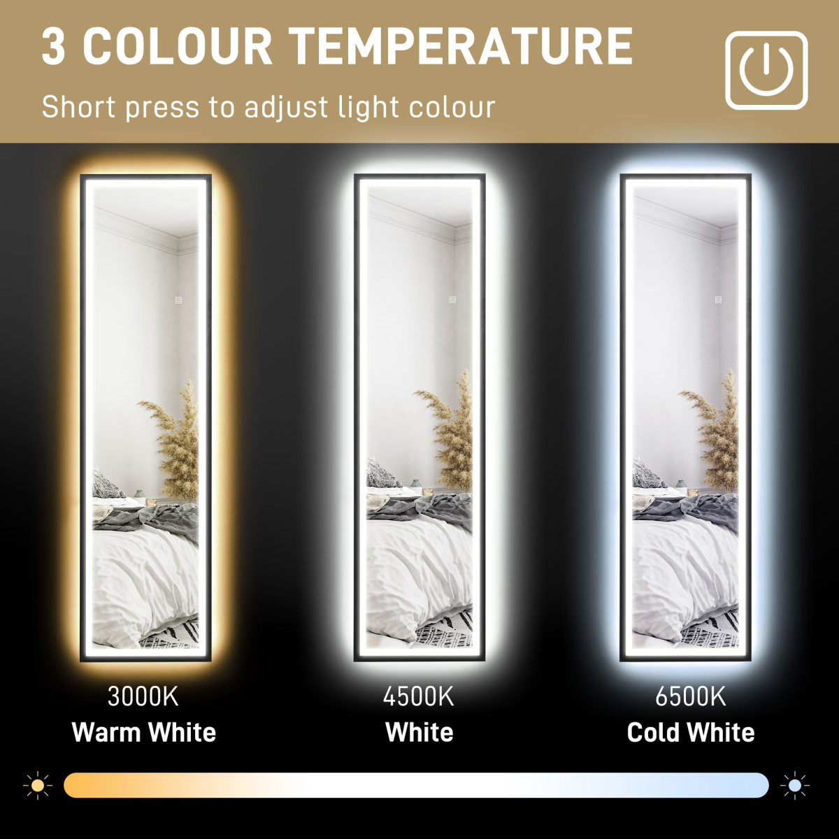 150 x 40cm Full Length Mirror w/ Adjustable Lights Metal Frame Black