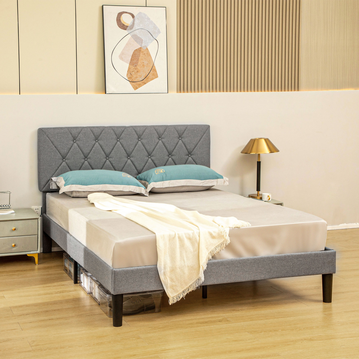 Double Bed Frame with 5-Level Adjustable Linen Headboard