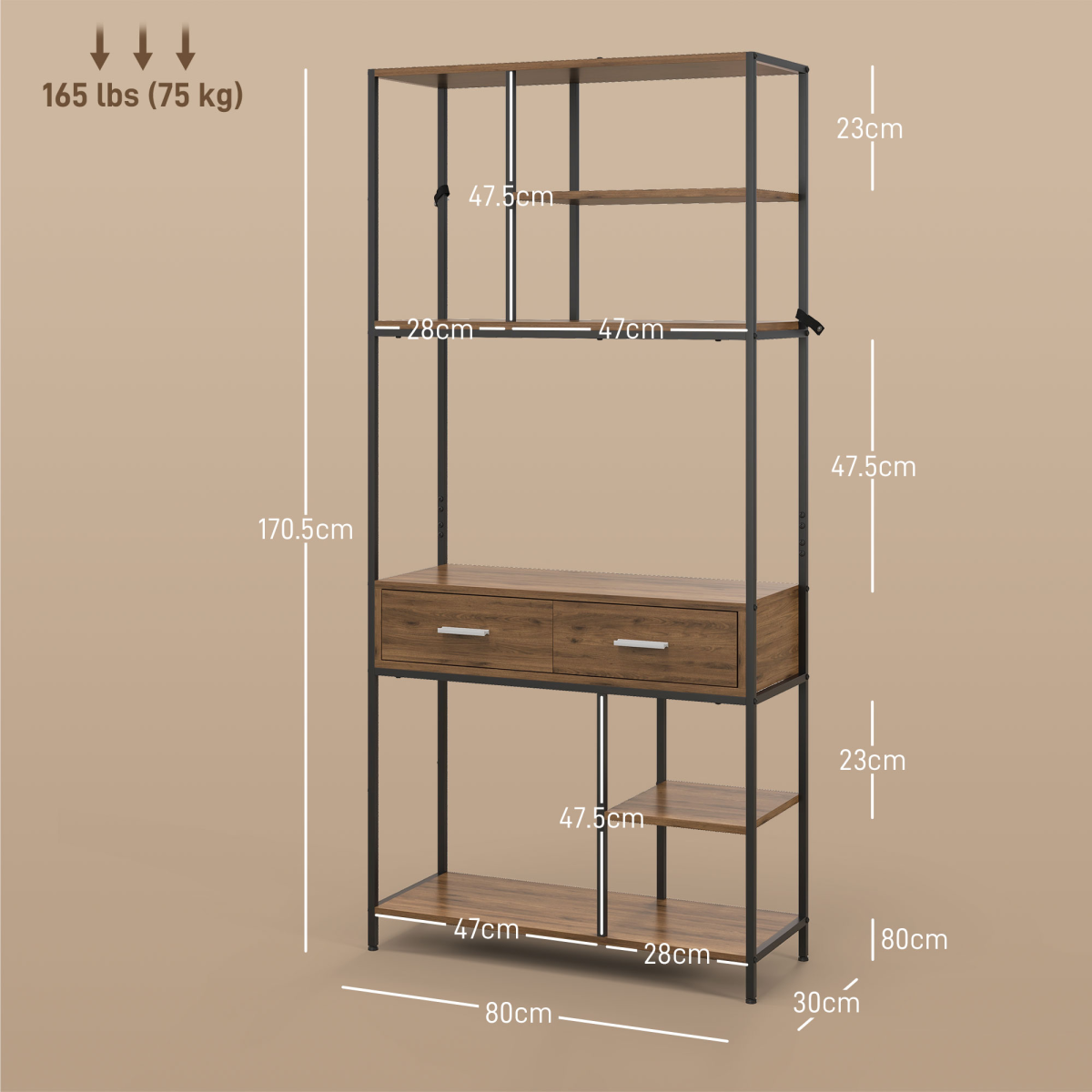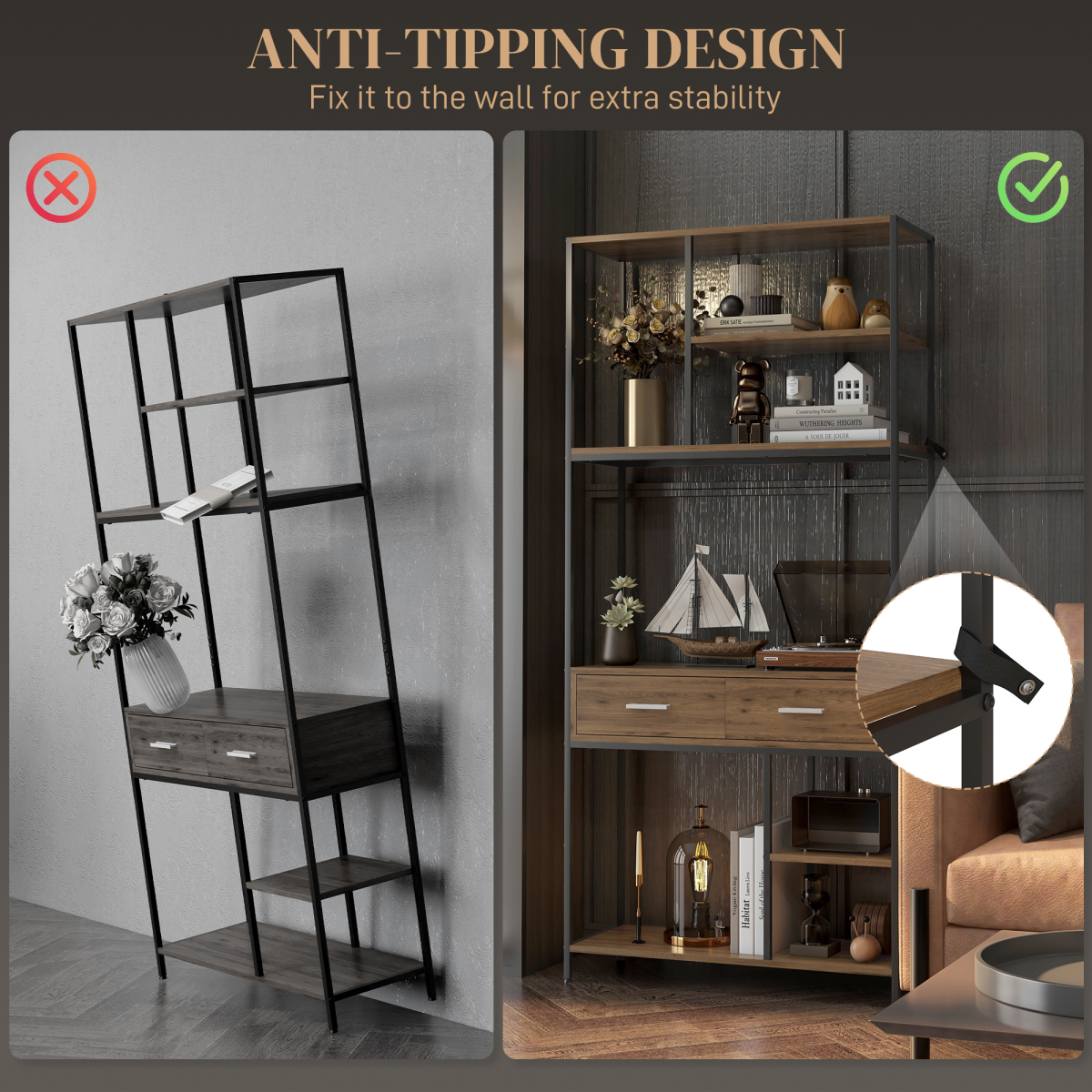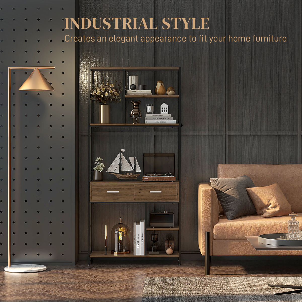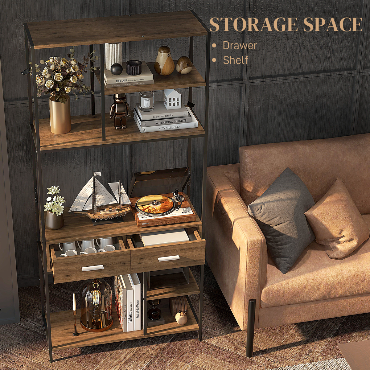 Designed for versatility, this bookshelf offers seven mixed-size shelves alongside two spacious drawers, making it an ideal solution for both open display and hidden storage. Whether you're organizing your favorite books, showcasing decorative items, or storing away personal belongings, this unit has you covered.