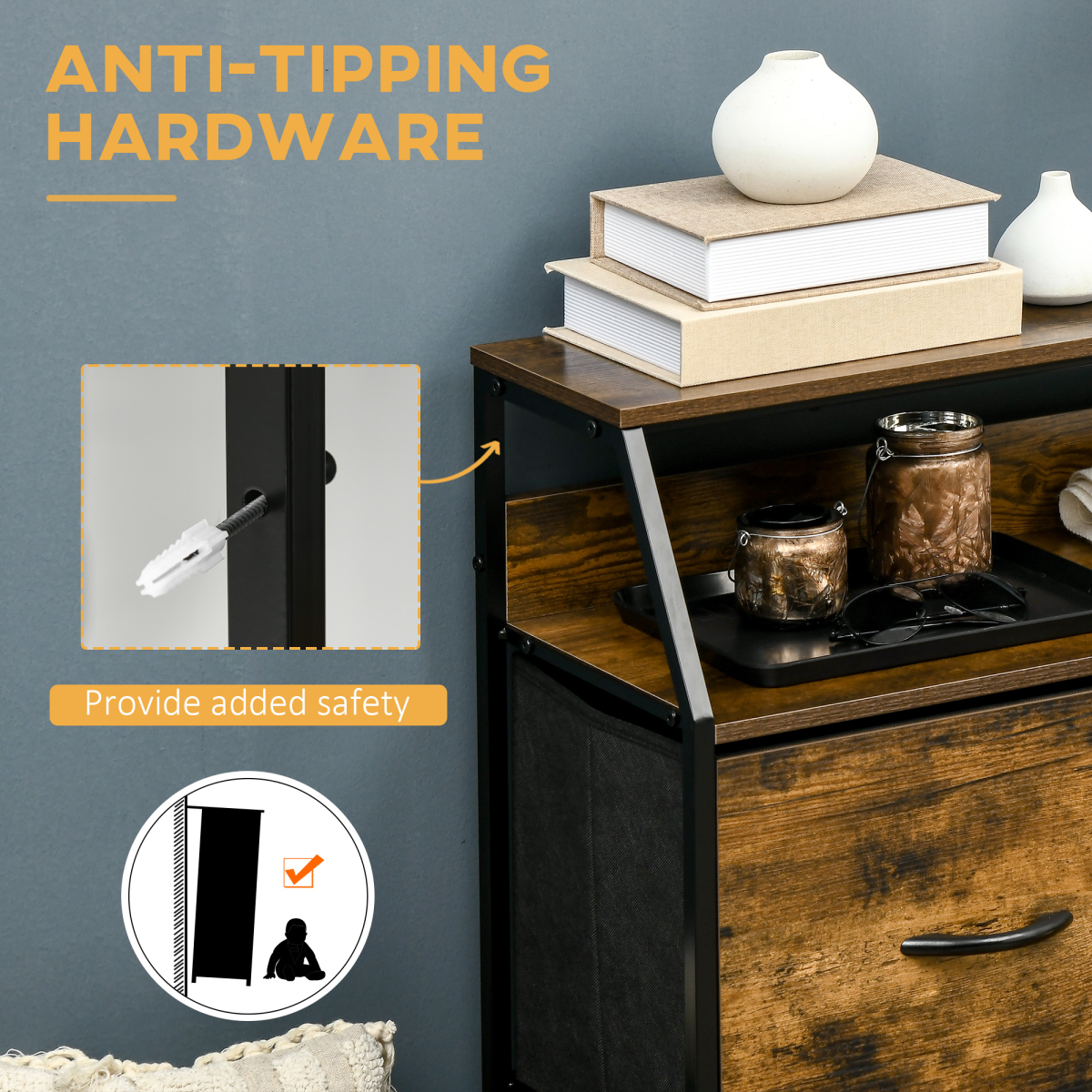 Rustic Brown 5-Drawer Chest with Open Shelf – Stylish Storage Solution