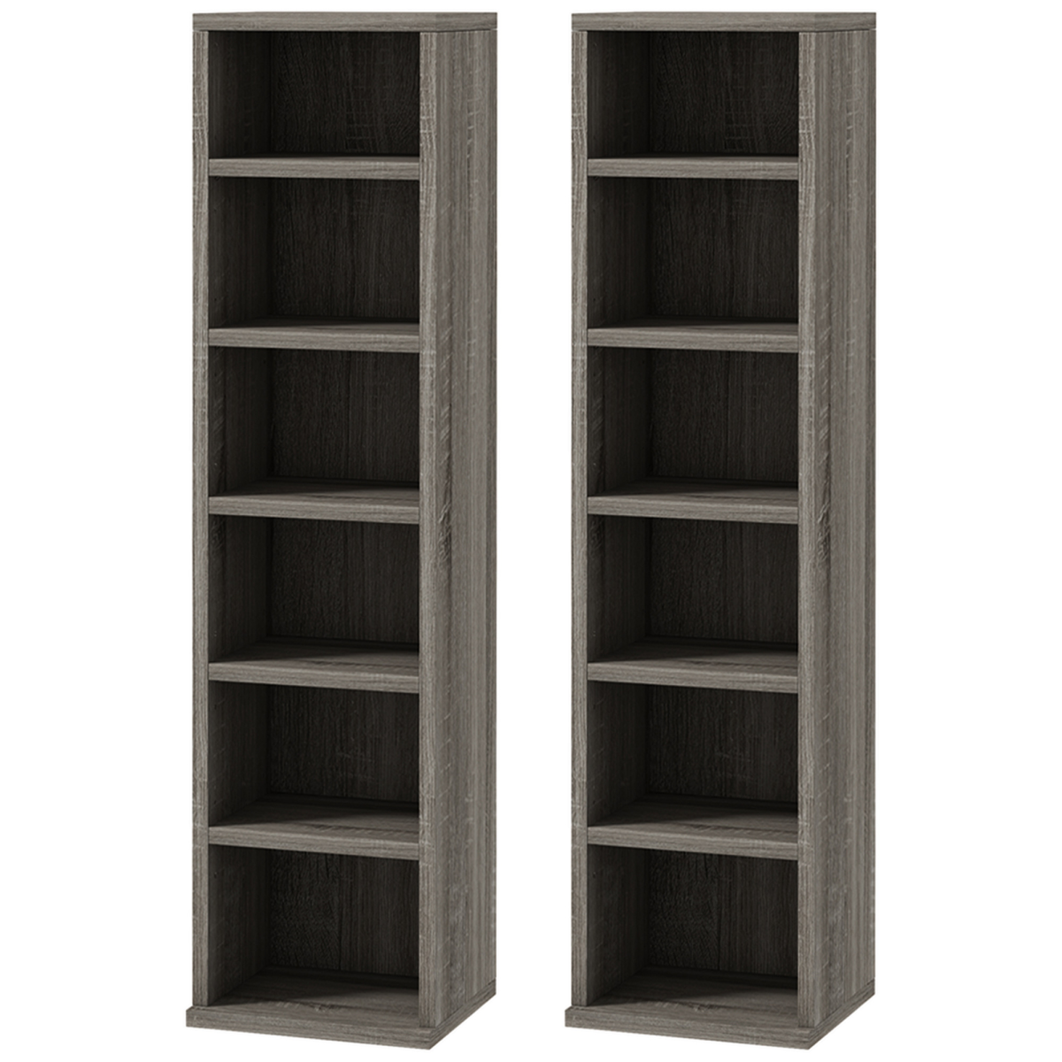 Elevate your media organization with this premium set of two CD Media Display Shelf Units in sophisticated mocha wood effect. Each meticulously designed tower features six adjustable compartments with 3.2cm height flexibility, collectively accommodating up to 612 CDs across both units. The robust particle board construction ensures exceptional durability with a 15kg total weight capacity (2kg per individual shelf), while integrated anti-tipping straps provide essential safety for households with children or pets. The thoughtfully engineered dimensions (88.5H x 21W x 22.5Dcm) optimize vertical storage space while maintaining a modest footprint, perfect for space-conscious environments. Each shelf (12.5H x 17.5L x 17Wcm) offers precise organization for various media formats beyond CDs, including DVDs, Blu-rays, or gaming media. These versatile towers transition seamlessly between home entertainment areas and professional settings, with the matching aesthetic creating visual harmony in any space. The adjustable configuration adapts to evolving collection needs, allowing customization for varying media sizes or decorative items. Assembly is required, but results in a sophisticated storage solution that balances form and function for the discerning media enthusiast.