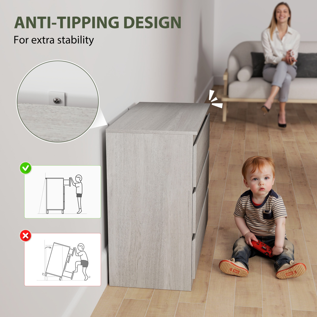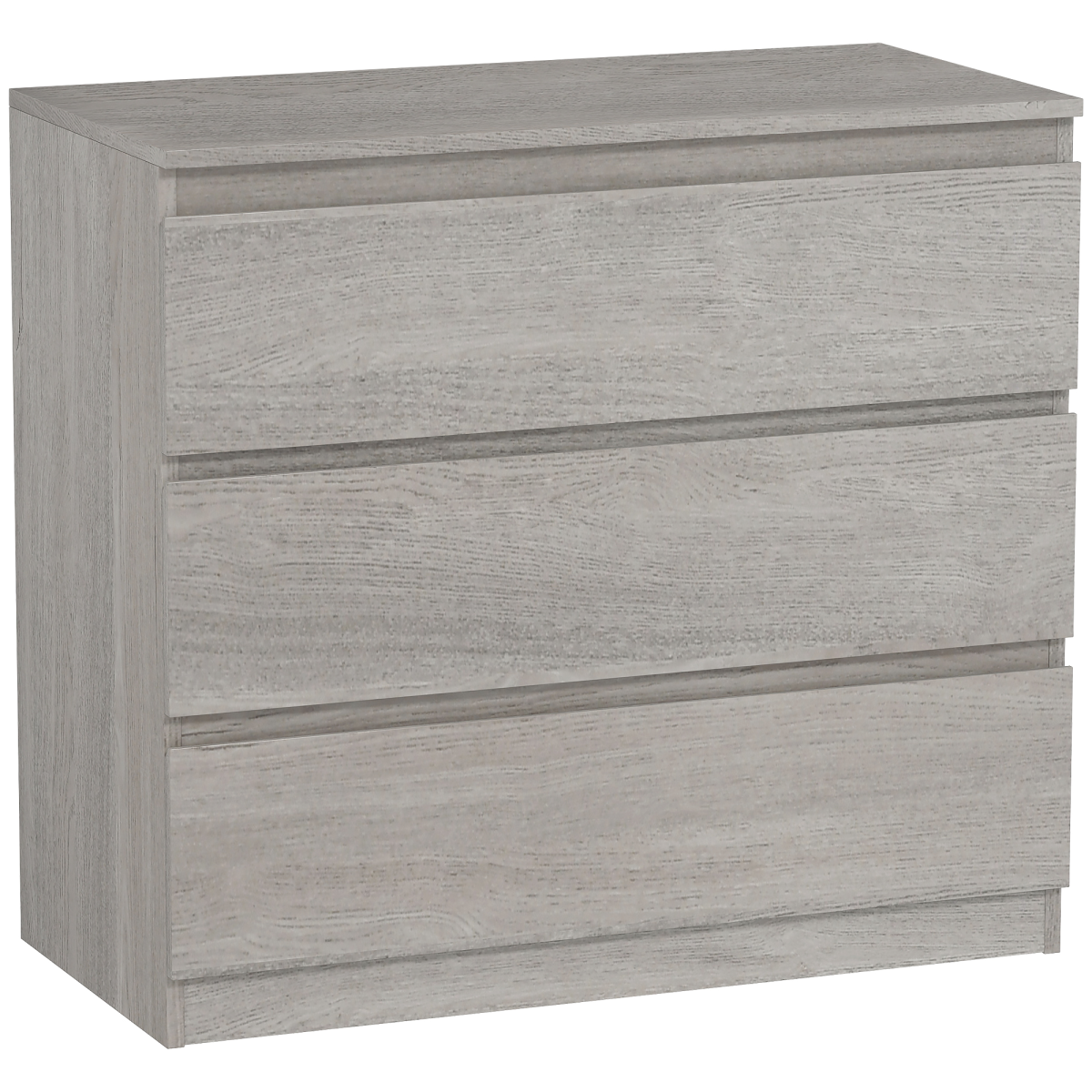 Transform your bedroom into a stylish and organized sanctuary with the Chest of Drawers. This elegantly designed dresser features three spacious drawers, providing ample storage space for your t-shirts, tops, trousers, underwear, and other essentials. Crafted from durable particle board, this unit is built for everyday use, ensuring stability and long-lasting performance. The flat top offers a perfect display area for your favorite decor items, adding charm to your room. For enhanced safety, the chest is equipped with anti-tipping straps, making it a secure option for any home.