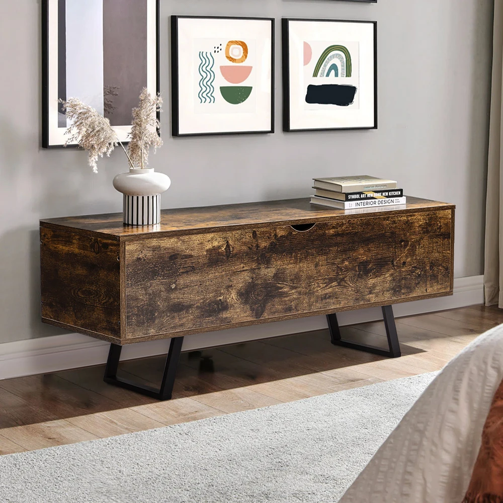 Industrial Wooden Flip Top Storage Bench for Storing Blankets, Pillows
