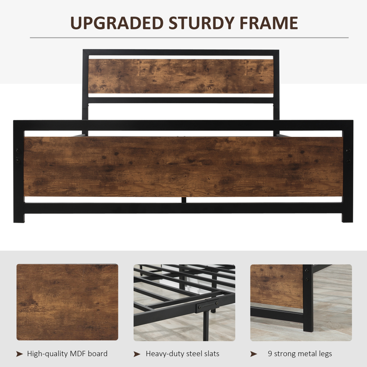 King Size Industrial Metal Bed Frame with Stylish Headboard & Footboard