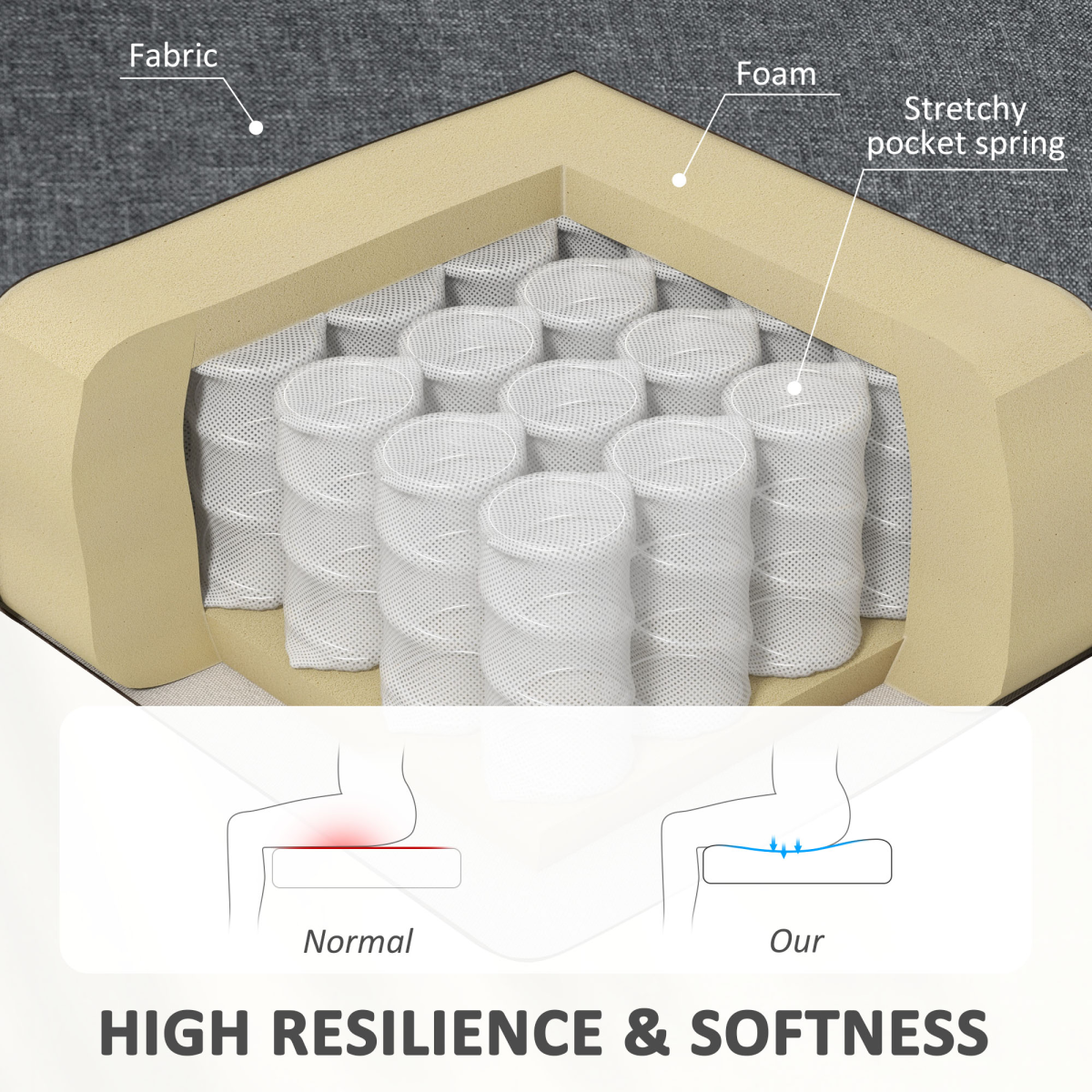 Built on sturdy wood legs, this loveseat offers reliable stability and a warm, natural accent that complements the refined silhouette. Easy to care for and designed for daily use, the cushions retain their shape for lasting comfort and elegance.