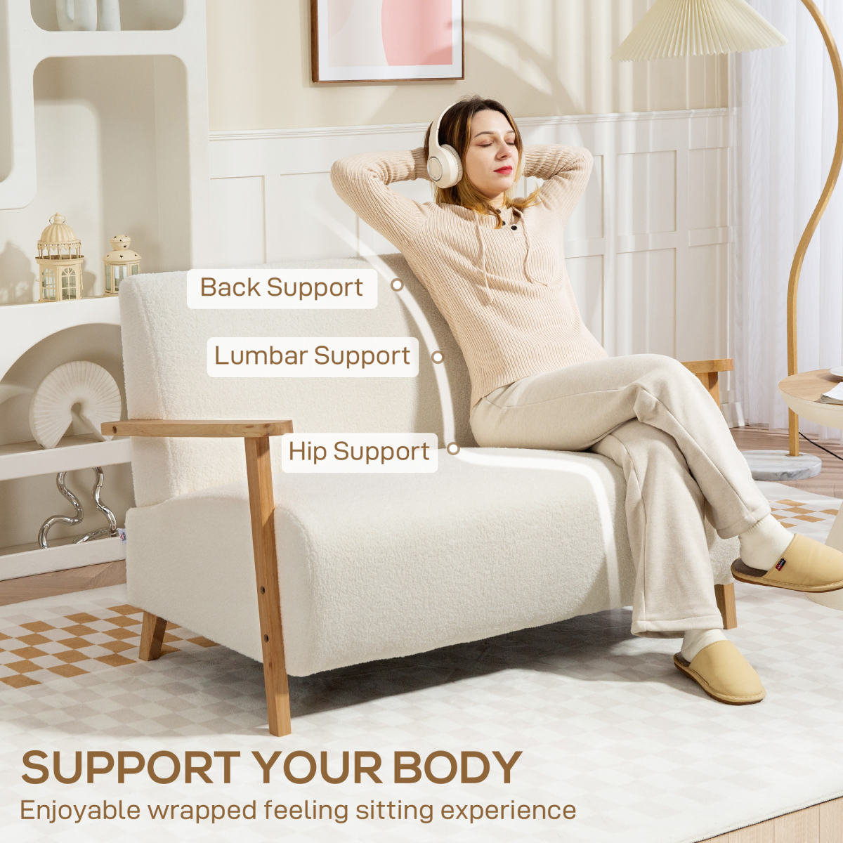 Introducing the loveseat sofa, a perfect fusion of Nordic design and the inviting softness of sherpa fabric. This elegant piece is thoughtfully crafted to provide deep comfort with its thickly padded seats and backrests, ensuring you can unwind in style. Designed for smaller areas, it boasts a compact footprint that allows for effortless placement in snug living rooms or cozy bedrooms.