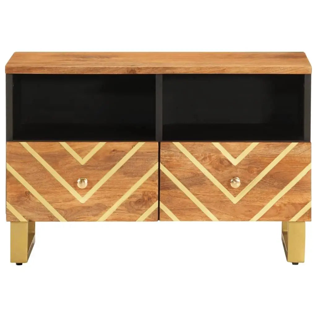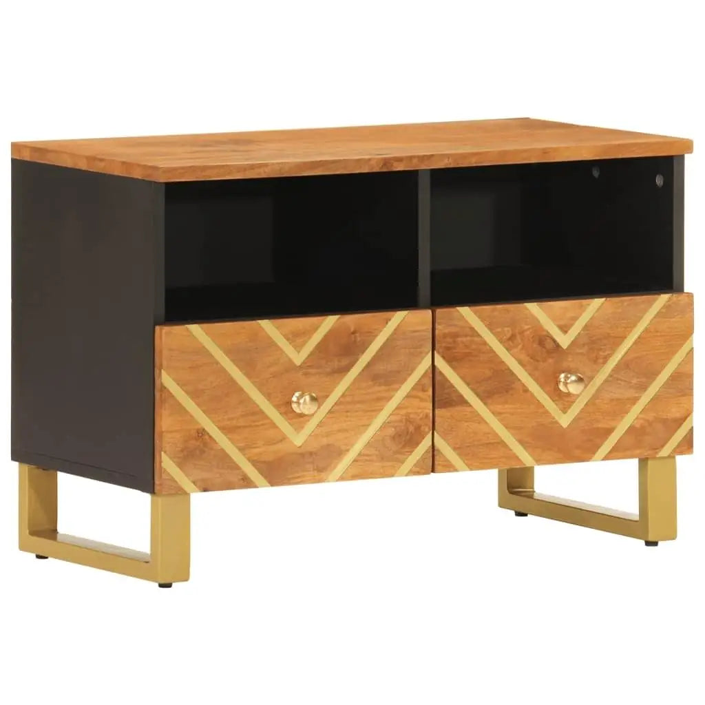 Modern Solid Wood TV Cabinet in Brown & Black - Durable Mango Design