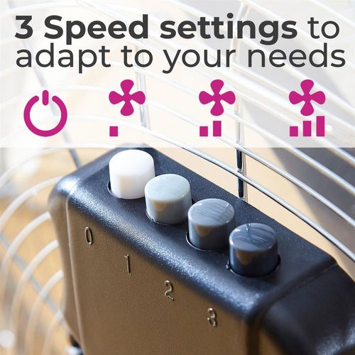 With its stylish metal effect finish, this fan adds a touch of retro elegance to your decor while remaining practical for all your cooling needs.