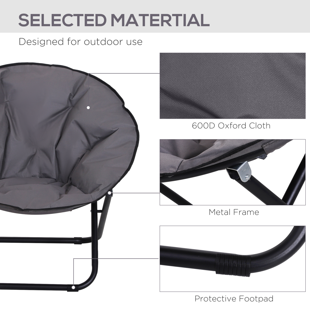 Moon Chair: Oversized Folding Saucer with Durable Metal Frame - Grey