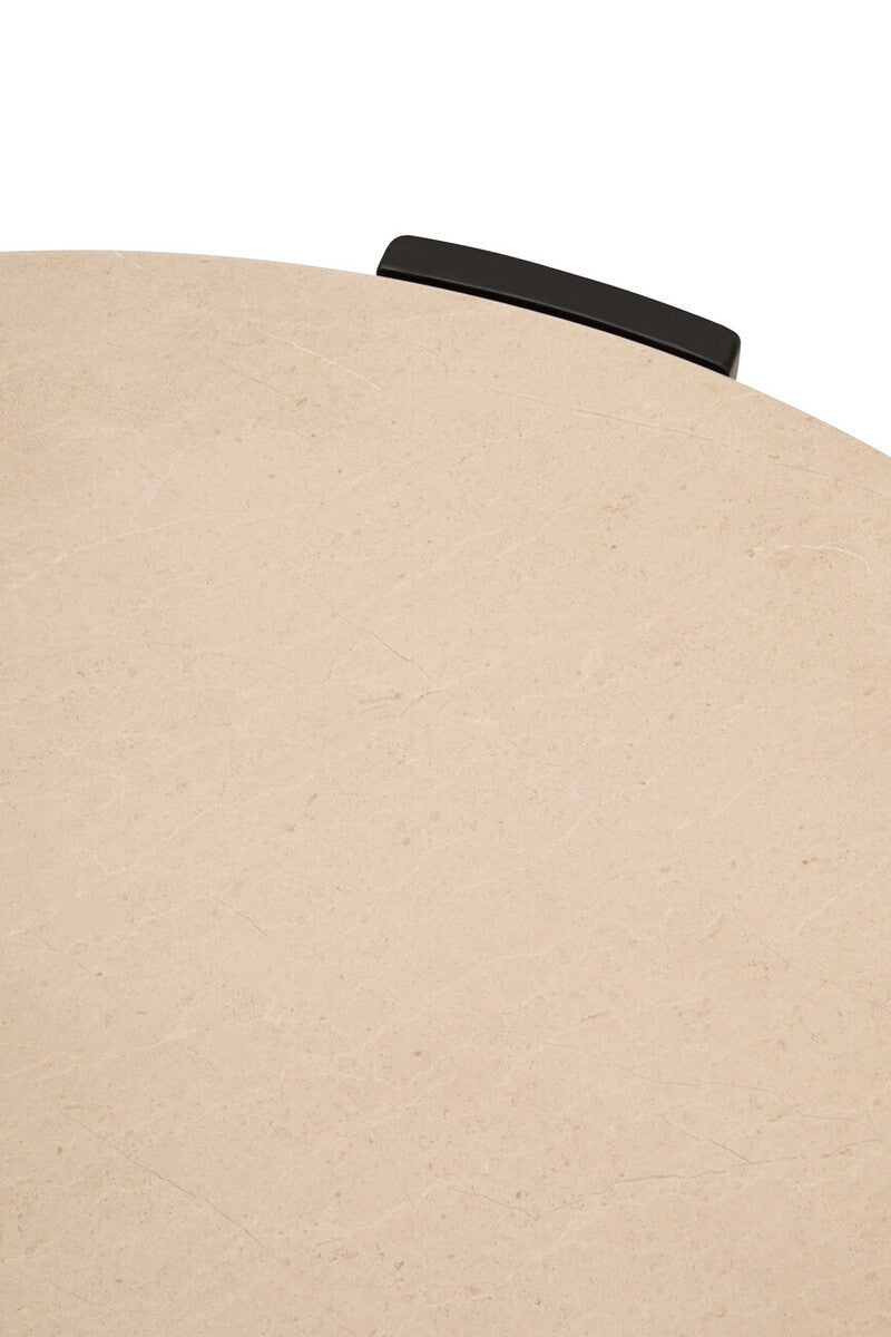 Balance bold contrast and refined elegance with the black round cream marble top large coffee table, a versatile showpiece that anchors your seating area with crisp, modern style. The 89 cm round profile provides ample space for coffee table books, floral arrangements, and entertaining essentials, while the 46 cm height aligns comfortably with most sofas and sectional configurations. A beautifully honed cream marble tabletop brings warmth and light to your room, showcasing naturally occurring veining and color variation. The darker structural details (in a sleek black finish) frame the stone and create a contemporary two-tone look that coordinates effortlessly with neutral palettes, black hardware, or mixed metals.