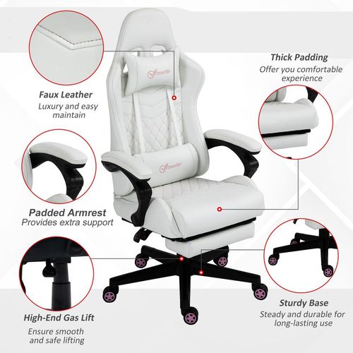 Vinsetto Racing Gaming Chair - Sleek White PU Leather Recliner for Home & Office