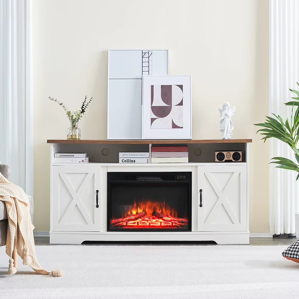 Recessed Electric Fireplace TV Stand with Timer and Remote Home Decoration