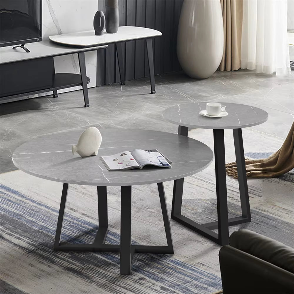 Elevate your living space with this Round Modern Marble Nesting Coffee Set of 2, featuring a large and a small side table crafted from durable sintered stone and supported by sturdy black painted metal iron legs. The sintered stone surface offers superior scratch, wear, and high-temperature resistance compared to traditional marble and glass, ensuring long-lasting elegance. Its modern minimalist design adds a luxurious yet affordable touch to any room. Ideal for serving drinks, displaying plants, or holding books, these tables provide versatile functionality for your living room, bedroom, or home office. Easy to assemble with included instructions and hardware, this set combines style, strength, and practicality.