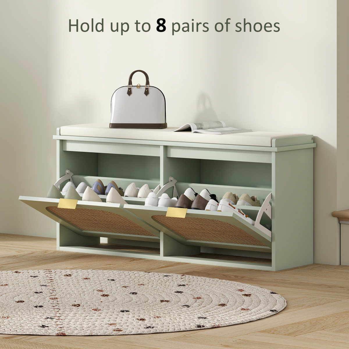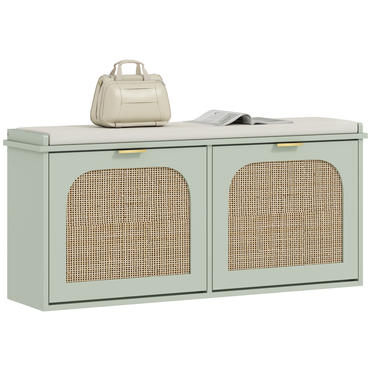 Serene Boho Shoe Storage Bench with Cushion Seat & Stylish Flip-Drawer - Light Green