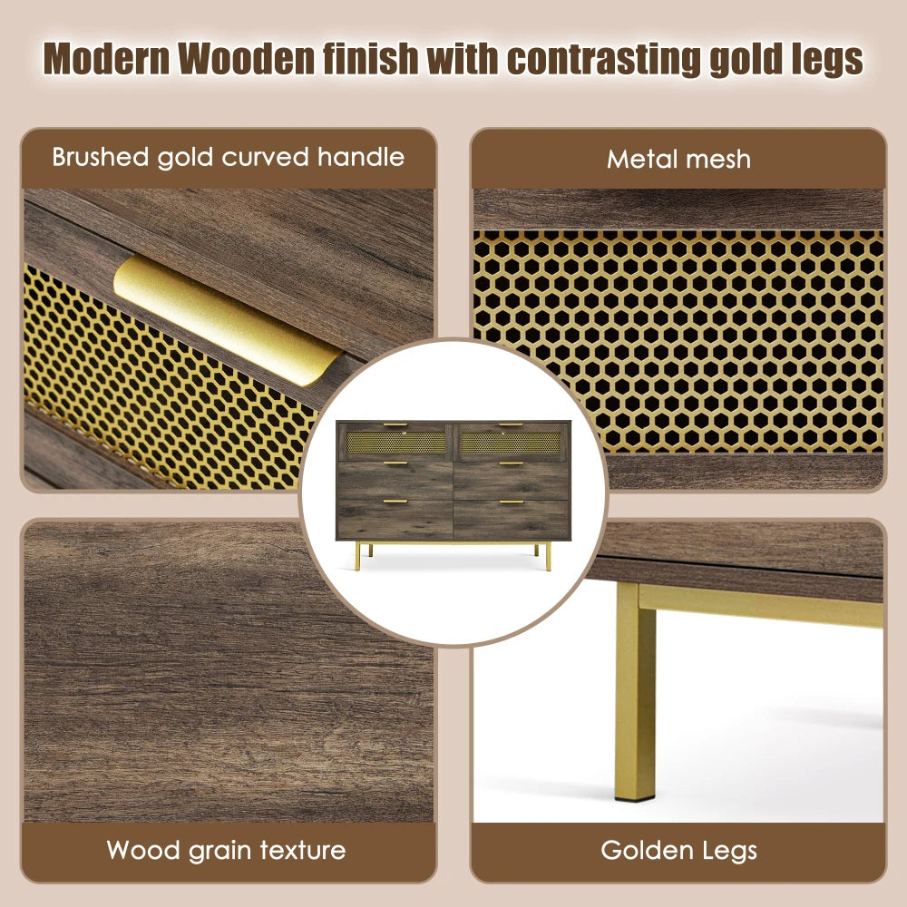 Sideboard Cabinet Metal Handle Dresser With 6 Drawers