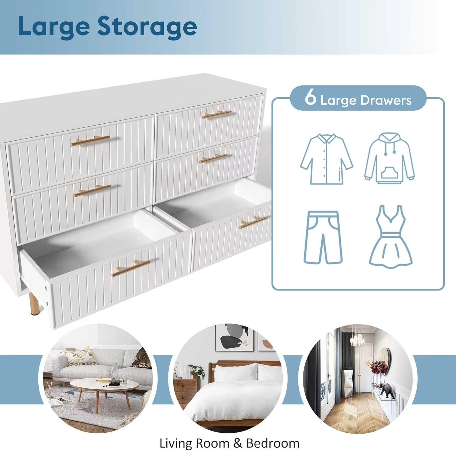 Sideboard Cabinet Room Chest with 6 Drawers (White)