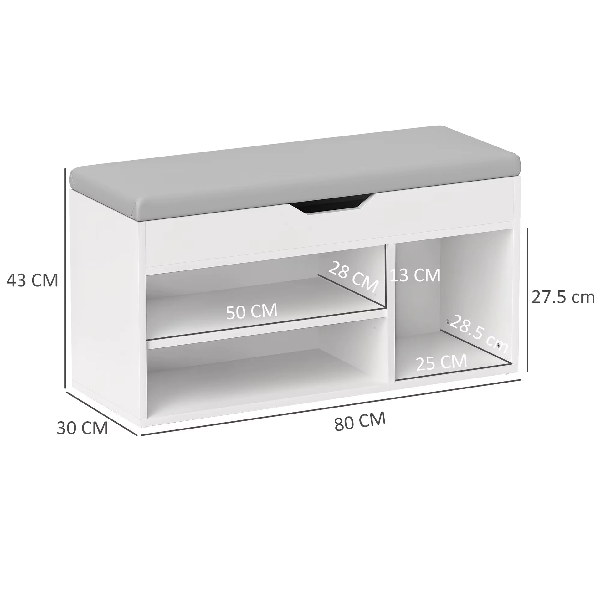 Sit-On Shoe Storage Unit W/ Hidden Compartment Handles Cream