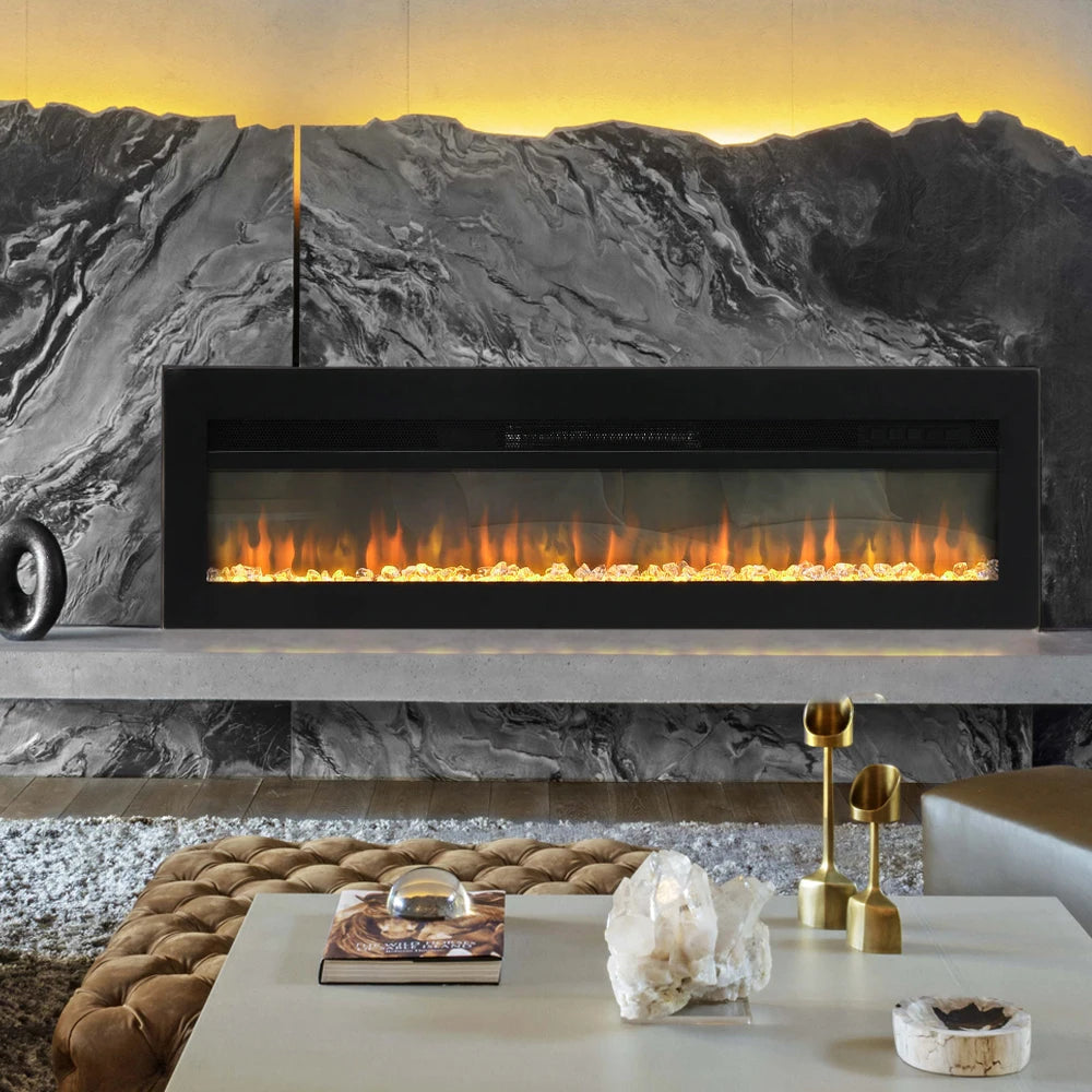 Transform your living space into a sanctuary of warmth and style with our stunning 70-Inch Black LED Electric Wall Fireplace. This elegant fireplace not only provides a cozy ambiance but also offers adjustable heating settings ranging from 60 ℉ to 82 ℉, all easily controlled with the included remote. Crafted with solid construction, this fireplace promises years of reliable service, making it the perfect addition to your home for many winters to come.