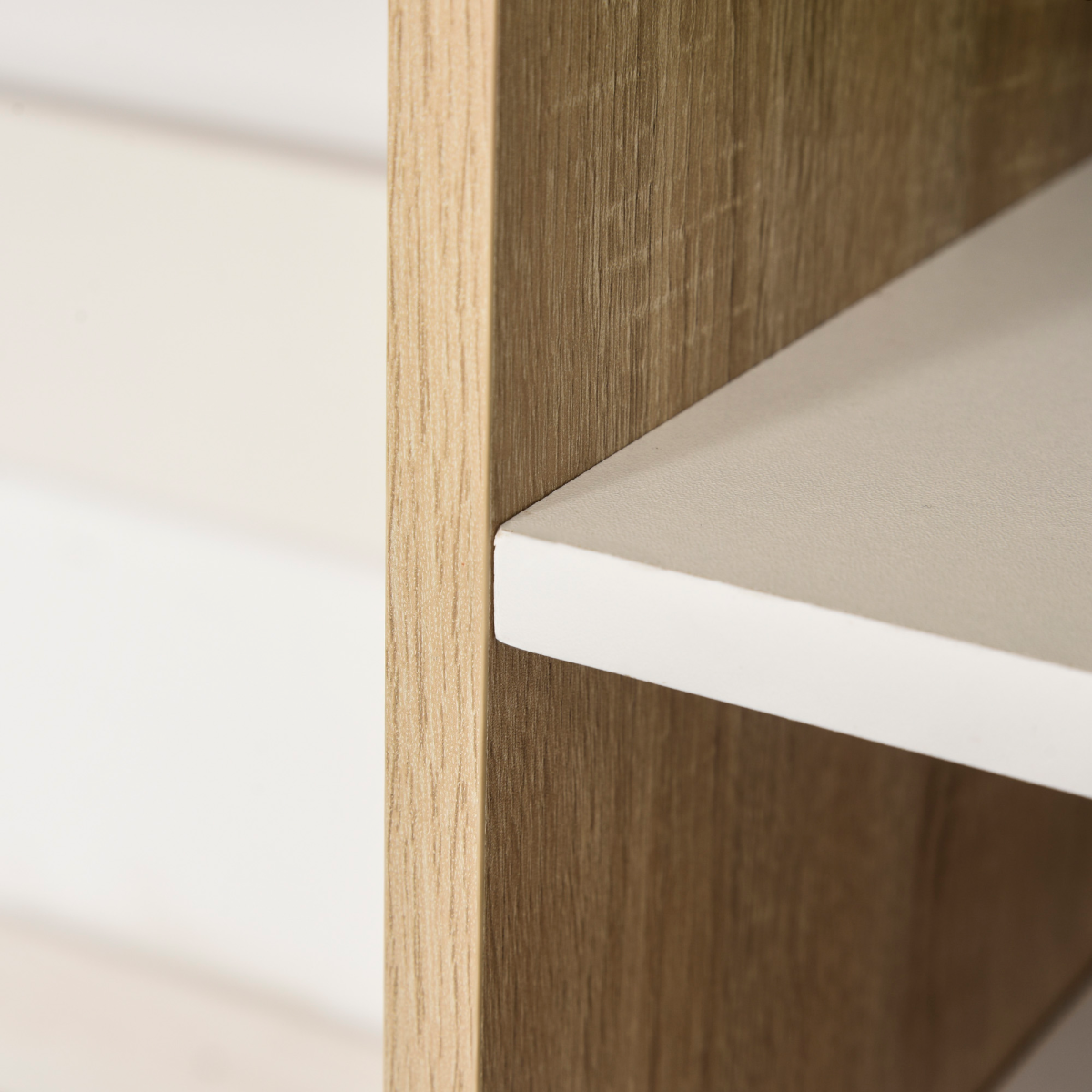 Introducing the Duo Work Desk, a perfect blend of style and functionality designed to enhance your workspace. With its chic white and oak wood-effect finish, this home office desk radiates freshness and beauty, making it suitable for any room, whether it's your home office, study, or beyond.