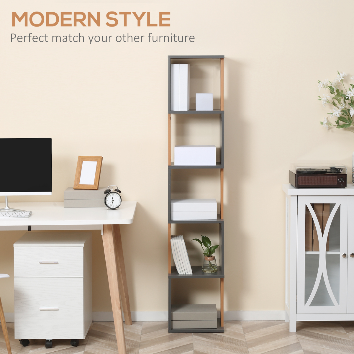 Stylish 5-Tier Dark Grey Bookshelf – Modern Design for Space-Saving Storage