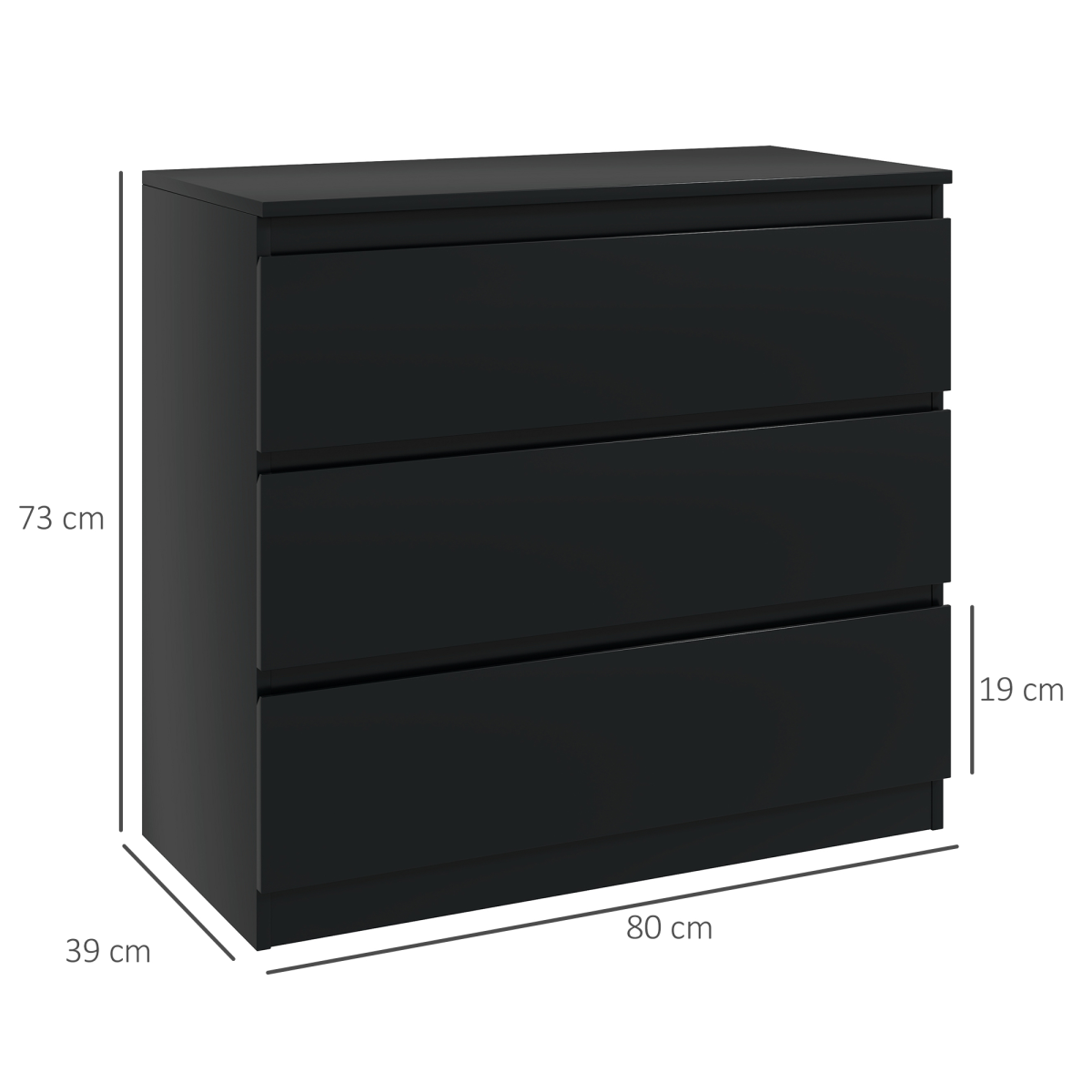 Enhance your bedroom's style and organization with the sleek and functional Chest of Drawers. This elegant dresser features three spacious drawers that provide ample storage for all your clothing essentials, from tees and tops to trousers and underwear. Crafted from durable particle board, this unit ensures stability and longevity for everyday use. The flat top surface offers a perfect space for displaying your favorite decor items or personal belongings. For added safety, the chest comes equipped with anti-tipping straps, giving you peace of mind.
