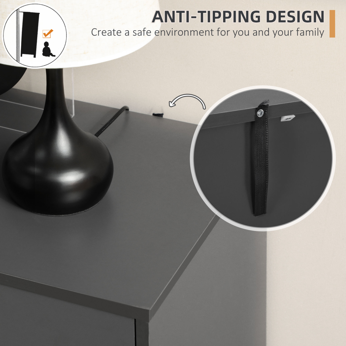 The adjustable shelves within the cupboards provide versatility, allowing you to customize storage to accommodate items of varying sizes. For peace of mind, the sideboard is equipped with anti-tipping straps, ensuring safety for your family and pets.