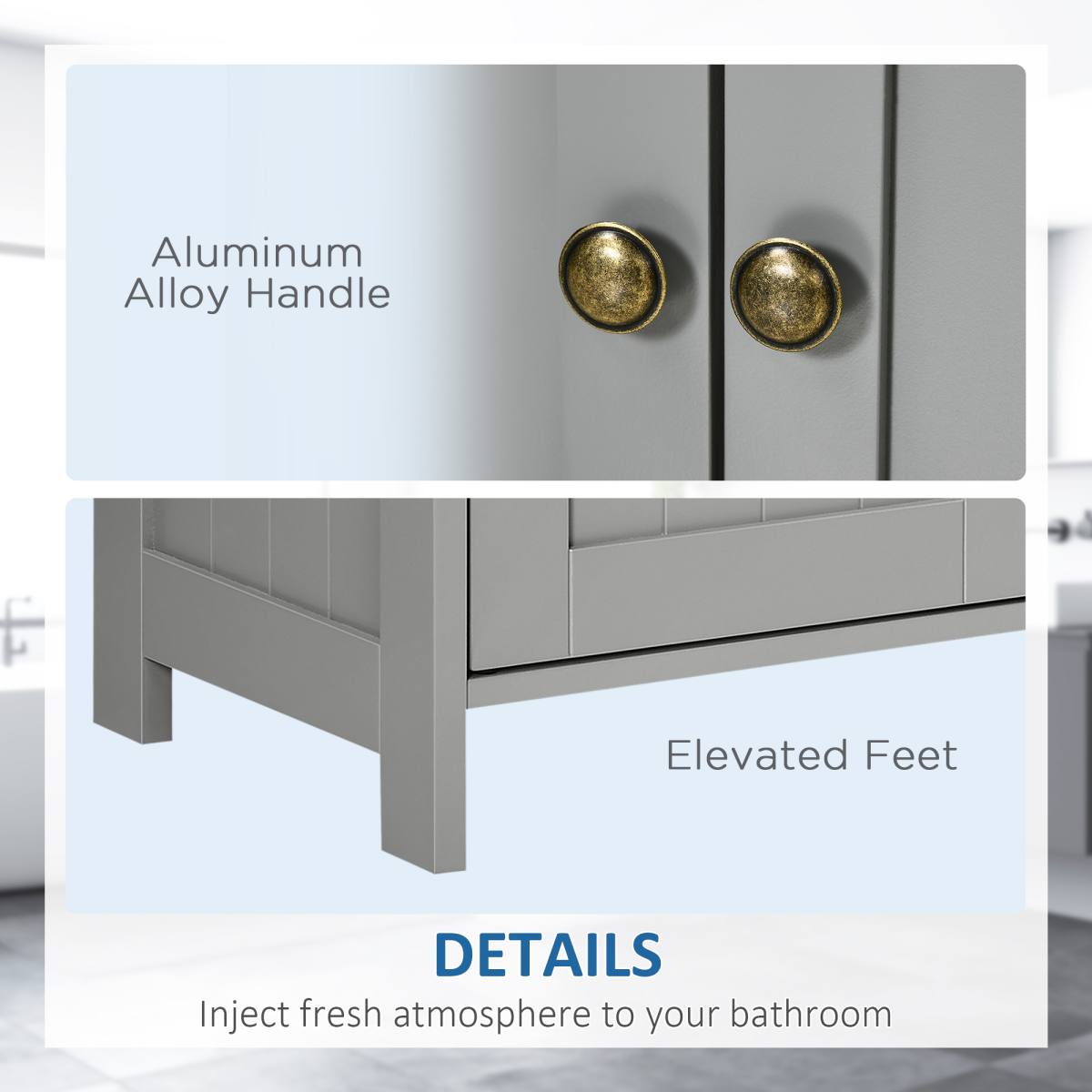 Stylish Grey Bathroom Pedestal Cabinet with U-Cut Storage & Shelves