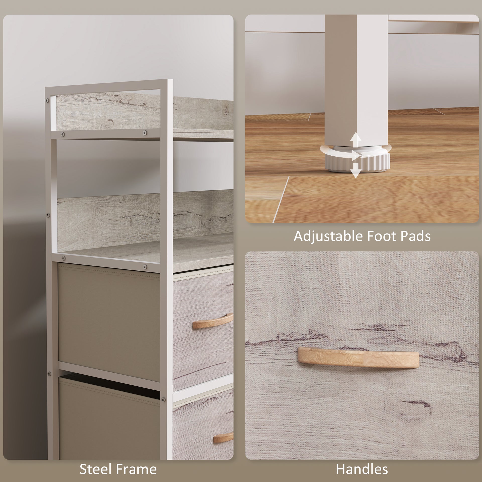 Crafted with a durable powder-coated steel frame, this chest of drawers ensures a strong and stable core. Additionally, the adjustable feet allow you to achieve perfect balance on any surface, enhancing its usability.