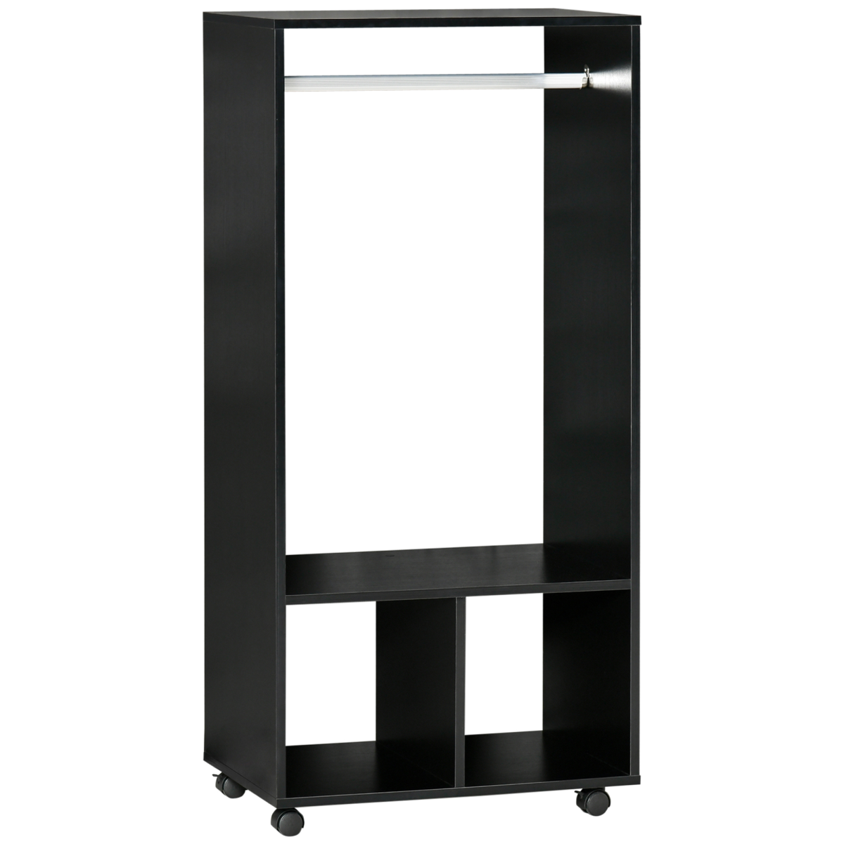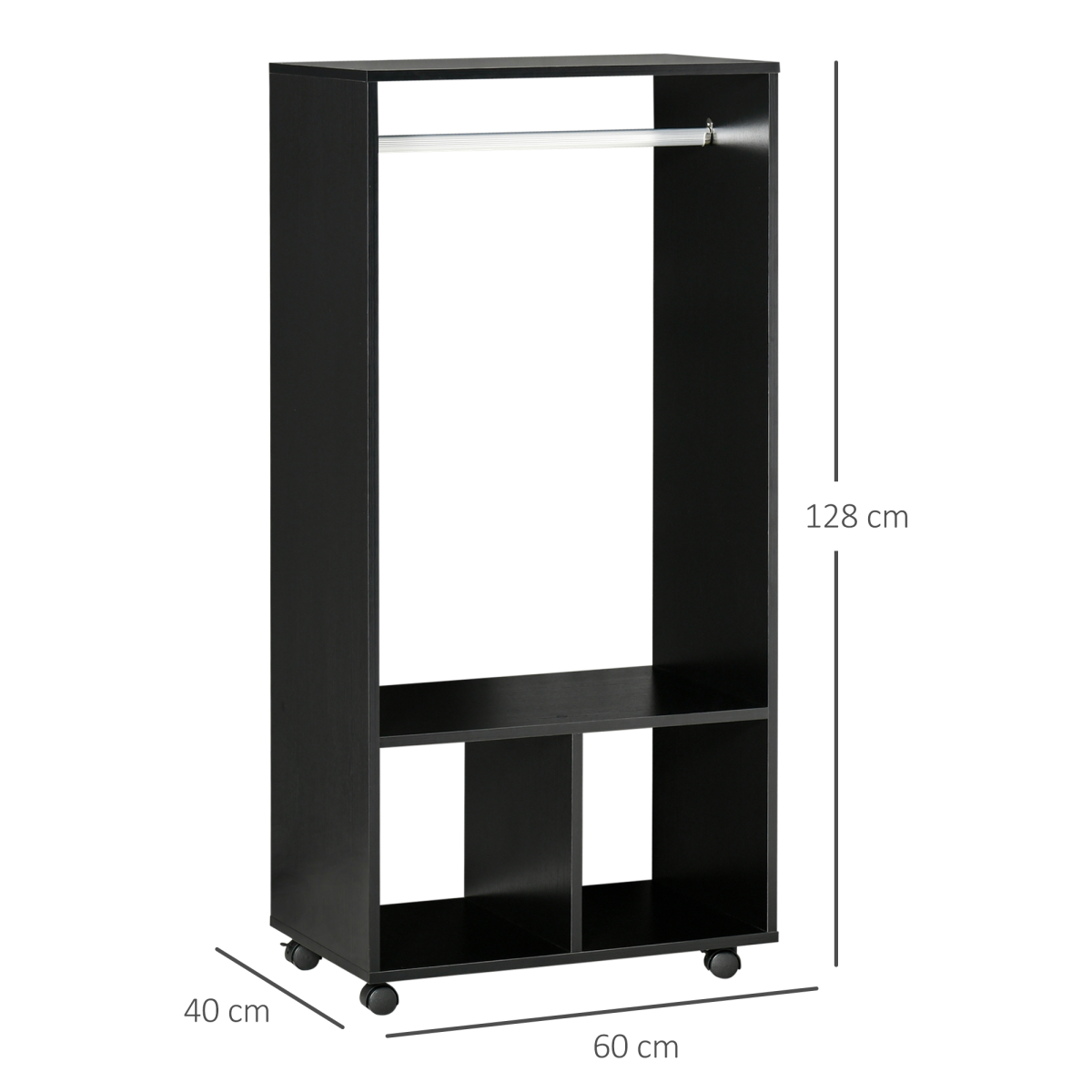Stylish Open Wardrobe Clothes Rail with Rolling Shelves - Black Storage Solution