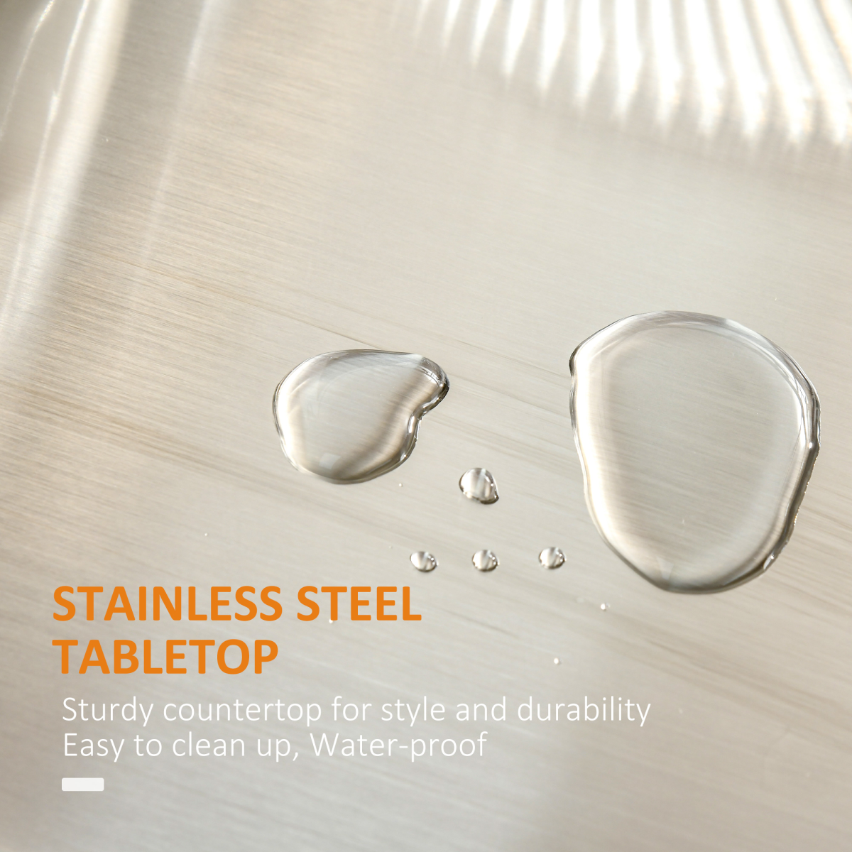 This elegant kitchen cart from is the perfect solution for enhancing your kitchen space. Designed with functionality in mind, it not only offers ample storage but also serves as an efficient preparation area. Featuring a spacious drawer, a storage cupboard, a convenient towel rail, a spice rack, and a knife rack, this cart ensures everything you need for cooking is within arm's reach. The durable metal countertop provides a safe and reliable surface for all your food preparation needs. Plus, with four smooth-rolling wheels, you can easily move this trolley wherever you need it in your kitchen.