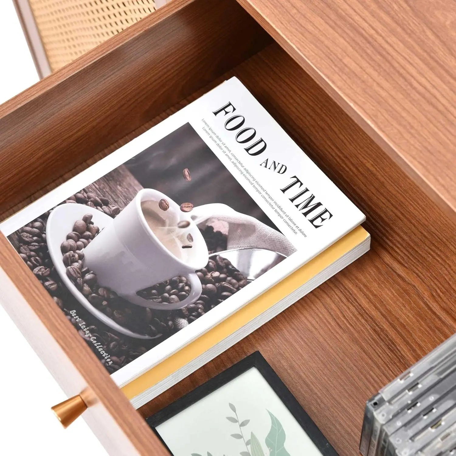 Stylish Walnut Rattan Sideboard Cabinet with 2 Doors, 3 Drawers, and Adjustable Shelf - Perfect for Your Living Room!