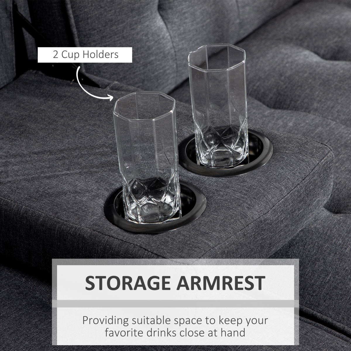 Enjoy customizable seating with a backrest that adjusts to three different reclining positions. The practical pull-down armrest includes two built-in cup holders, making it the perfect spot for enjoying movie nights or entertaining friends. Upgrade your home and embrace the convenience of multifunctional furniture!