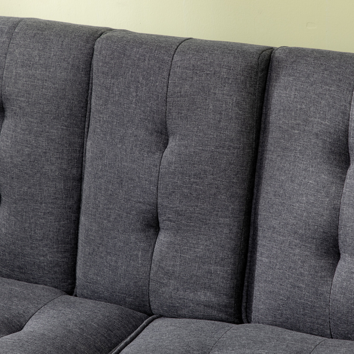 Transform your living space with the versatile and stylish Upholstered Sofa Bed. Perfectly designed for compact homes, this three-seater futon effortlessly transitions from a comfortable sofa to a cozy bed, making it an ideal solution for both relaxation and accommodating overnight guests. Upholstered in a chic linen-look fabric, this sofa bed not only looks great but is also filled with sponge for enhanced comfort.