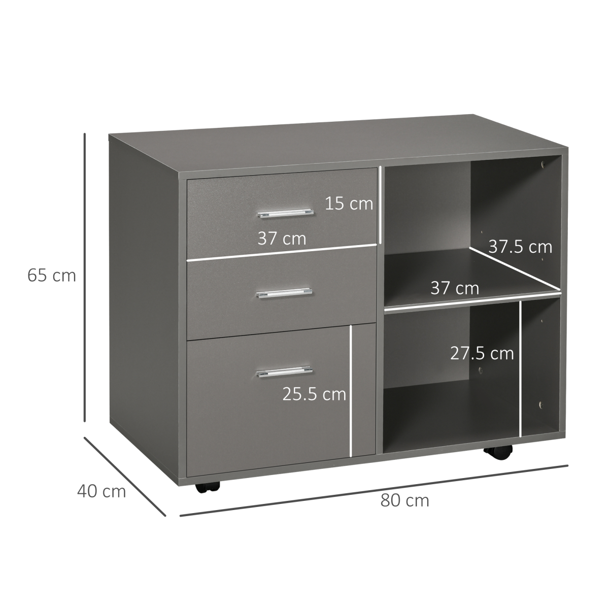 Versatile Freestanding Storage Cabinet with Wheels - 3 Drawers & 2 Shelves