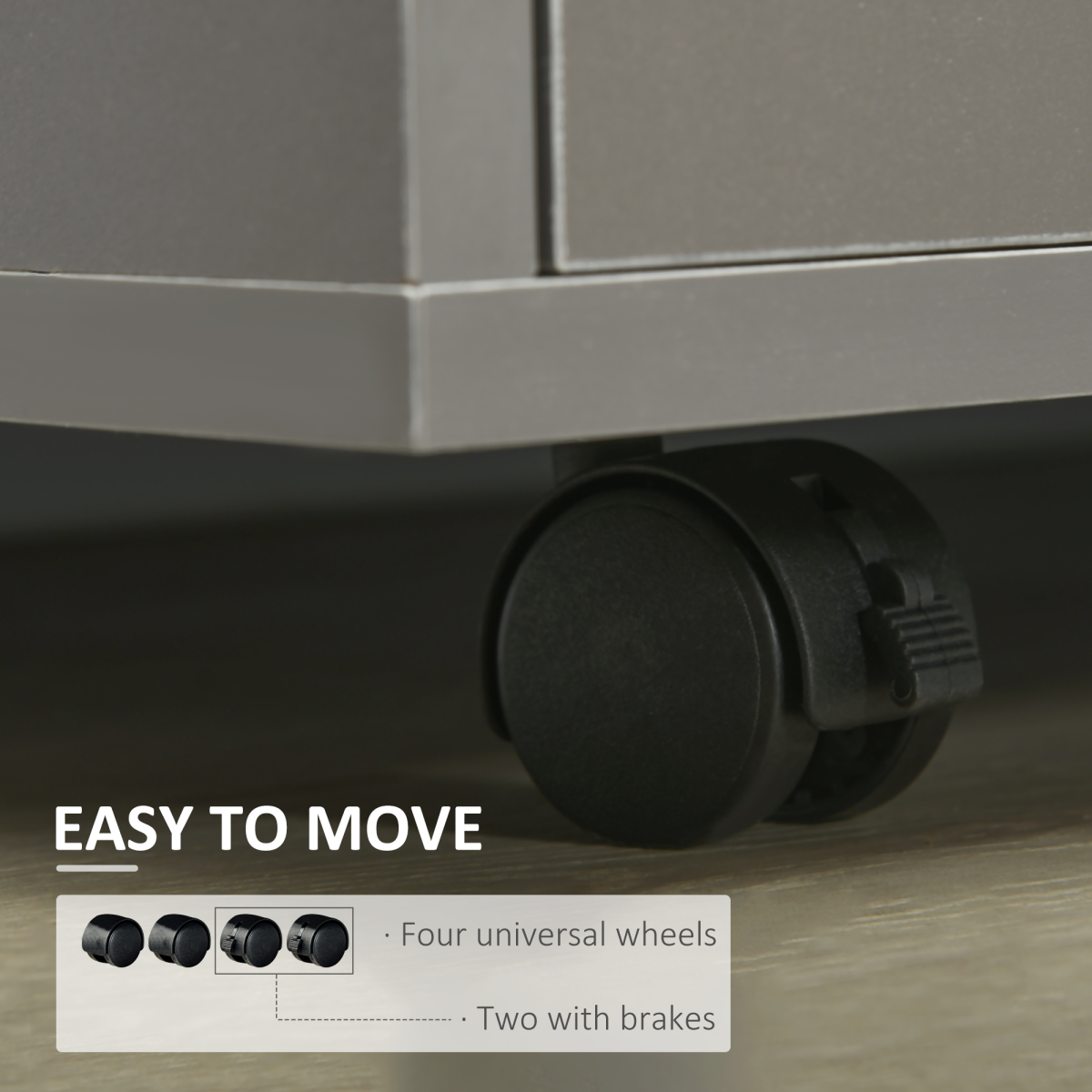 The adjustable shelf on the right allows you to customize the cabinet to suit your unique needs, making it perfect for any workspace. Featuring four smooth-rolling castor wheels, this cabinet can be easily moved wherever you need it most, with two of the wheels being lockable to ensure stability and keep your items securely in place.