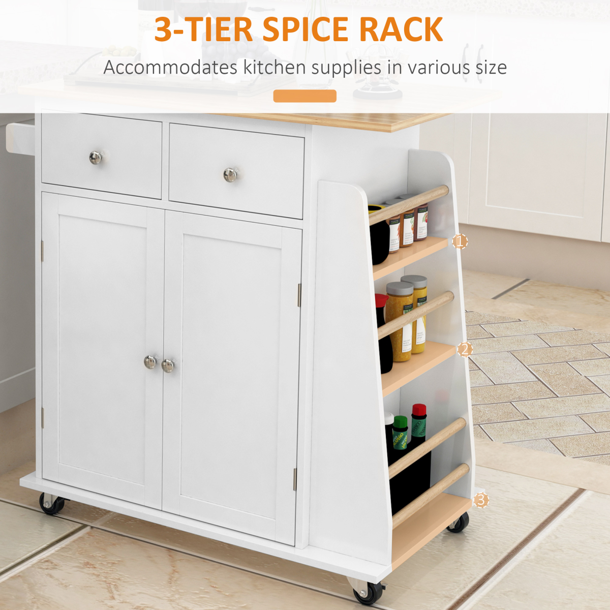 Versatile Kitchen Island with Rubberwood Top & 3-Tier Spice Rack for Easy Storage