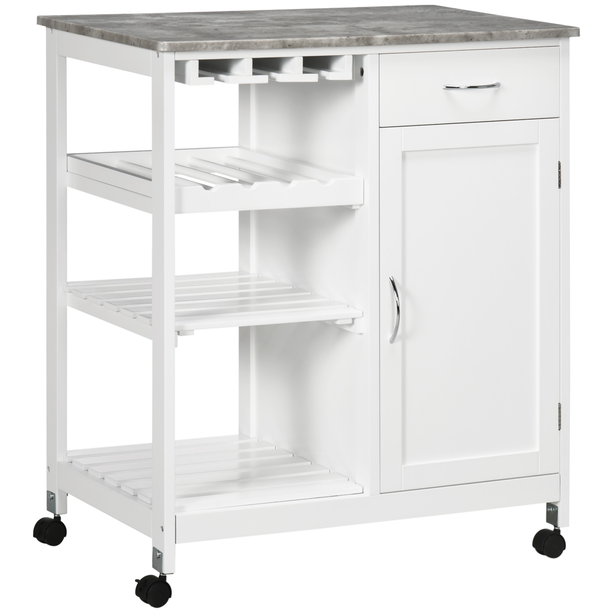 Versatile White Kitchen Trolley Cart with Wine Rack & Open Shelves on Wheels