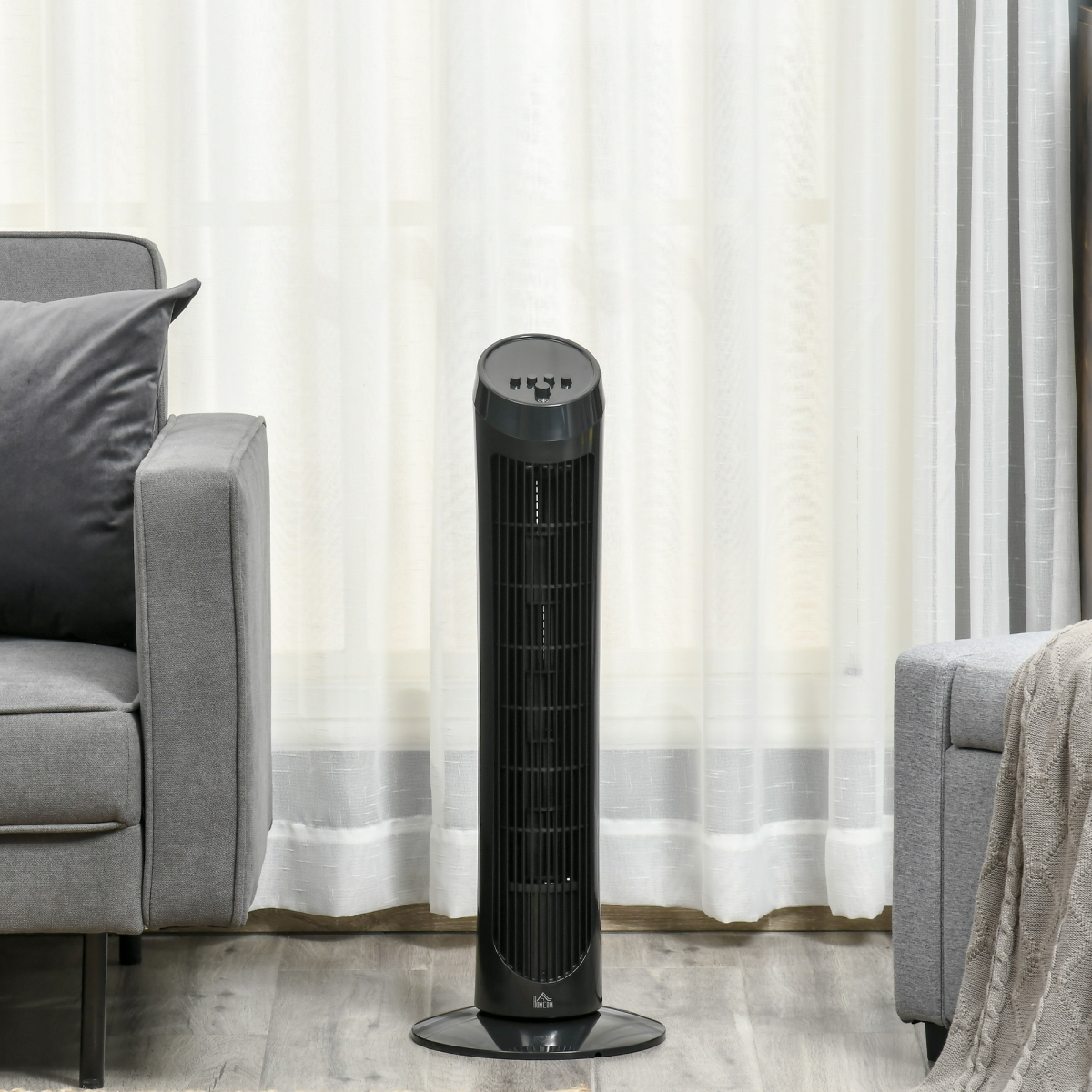 Experience the ultimate comfort with the HOMCOM Tower Fan, designed to efficiently circulate air throughout your space. Featuring three adjustable speed settings, easily selectable via user-friendly push-button controls, you can customize the airflow to perfectly suit your needs. This sleek, space-saving standing fan is an ideal addition to any kitchen or living room, ensuring a refreshing breeze while maintaining an elegant appearance. As temperatures rise in the upcoming seasons, this oscillating fan is a must-have for your home.