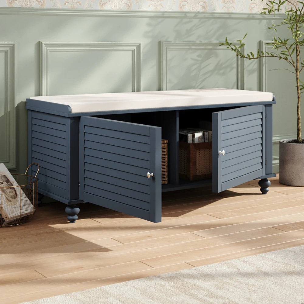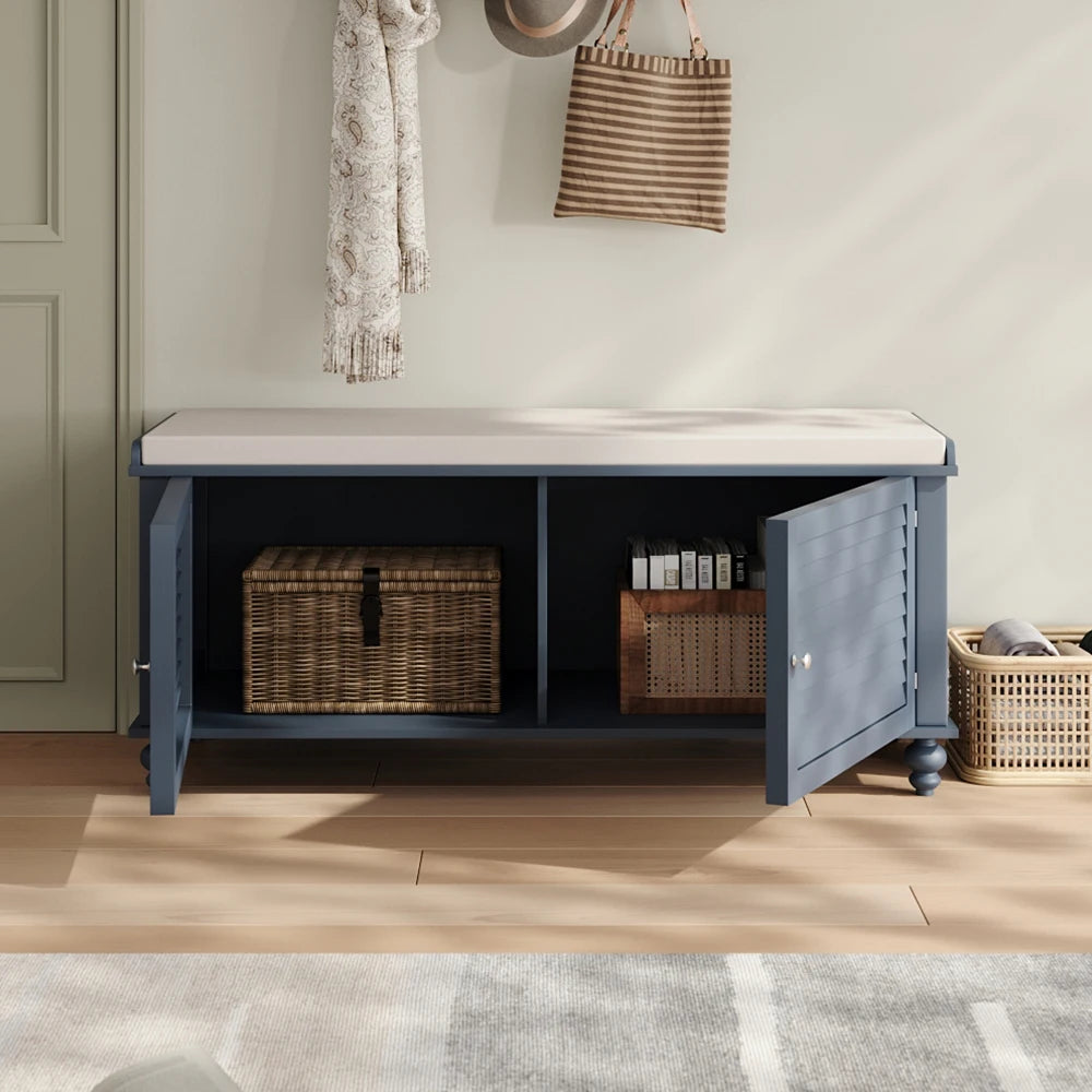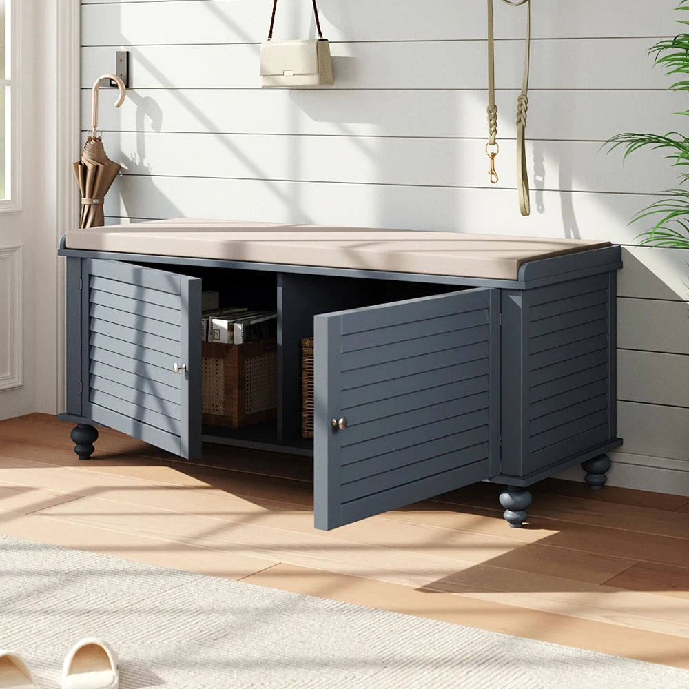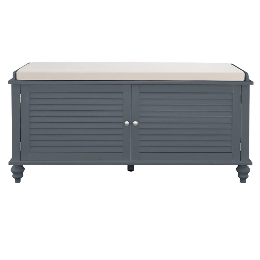 Wooden Shutter Door Shoe Cabinet Storage Bench with Linen Cushion