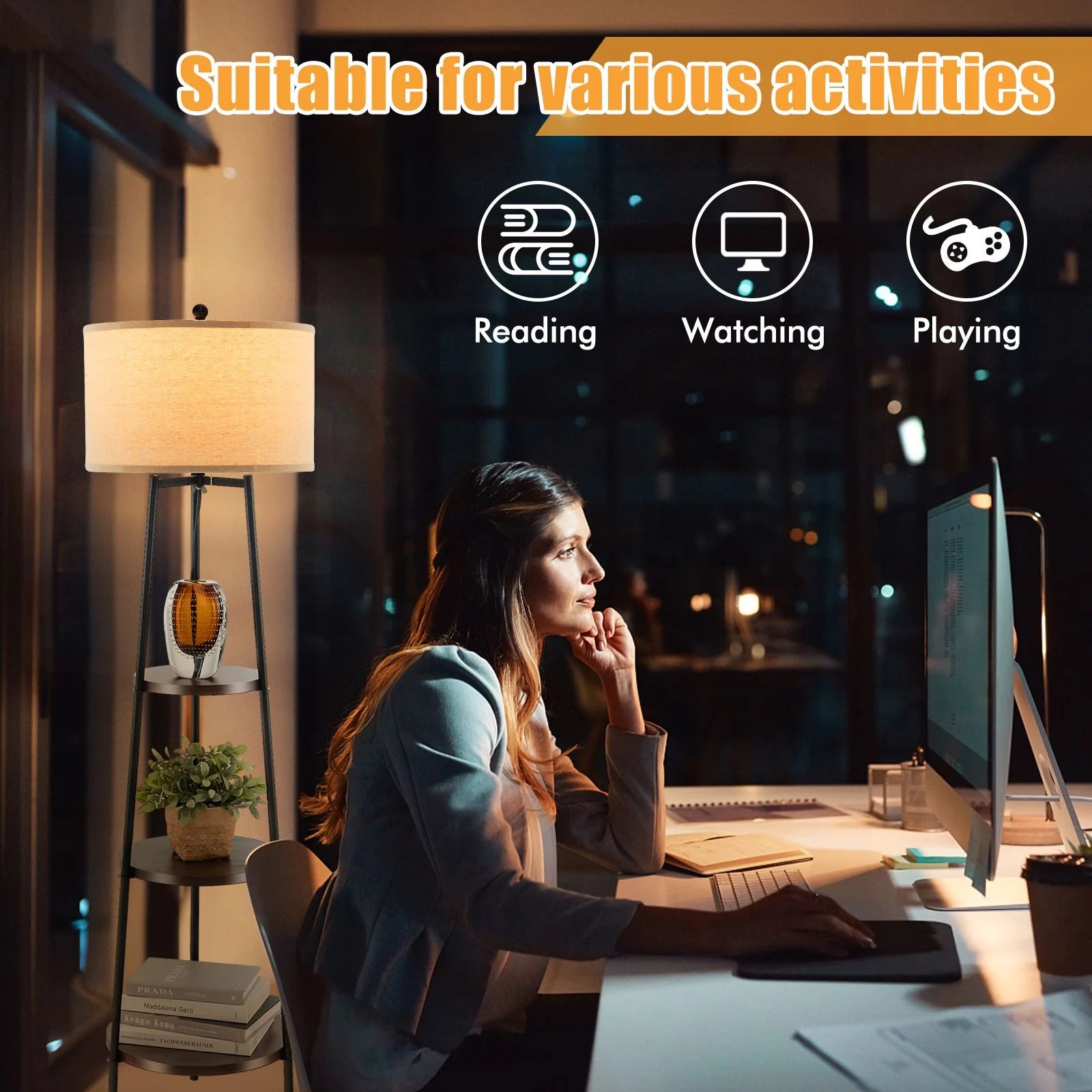 Versatile Usage with 3 Tier Shelves: Equipped with 3 layer open storage shelves, the corner floor lamp offers ample storage space for kinds of items. You can make full use of them as a bookshelf, or as a display shelf to keep decorations, potted plants, storage baskets within easy reach.